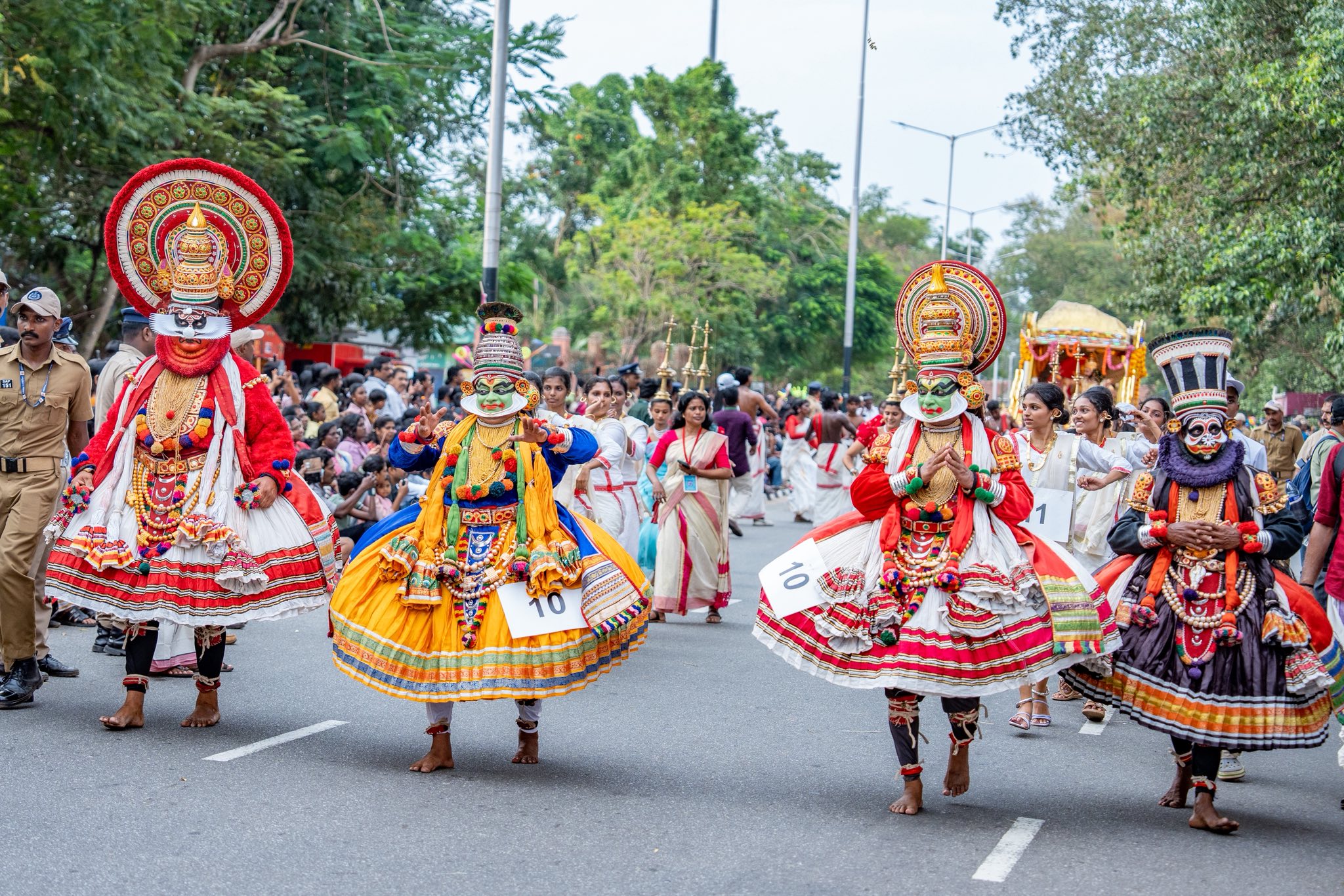 സംസ്ഥാന സർക്കാരിന്റെ ഓണം വാരാഘോഷത്തിന് സമാപനം കുറിച്ചുകൊണ്ടുള്ള വർണശബളമായ ഘോഷയാത്ര കാഴ്ചയുടെ വിരുന്നൊരുക്കി. ഗവർണർ രാജേന്ദ്ര വിശ്വനാഥ് അർലേക്കർ, ഗവർണറുടെ ഭാര്യ അനഘ അർലേക്കർ, മുഖ്യമന്ത്രി പിണറായി വിജയൻ, മുഖ്യമന്ത്രിയുടെ ഭാര്യ കമല വിജയൻ, മന്ത്രിമാരായ വി. ശിവൻകുട്ടി, കടന്നപ്പള്ളി രാമചന്ദ്രൻ, പി. എ. മുഹമ്മദ് റിയാസ്, ജി. ആർ. അനിൽ തുടങ്ങിയവർക്കൊപ്പം ദക്ഷിണാഫ്രിക്കയിലെ മന്ത്രിയായ മാർട്ടിൻ മയ്യറും കാഴ്ച വിരുന്നിന് സാക്ഷിയായി. മുൻ മന്ത്രി എം വിജയകുമാർ, എംഎൽഎമാരായ കടകംപള്ളി സുരേന്ദ്രൻ, ആന്റണി രാജു, സി. കെ. ഹരീന്ദ്രൻ, കെ. പി. കുഞ്ഞഹമ്മദ് കുട്ടി, വി. ജോയ്, മേയർ ആര്യ രാജേന്ദ്രൻ, ഡെപ്യൂട്ടി മേയർ പി. കെ. രാജു, ജില്ലാ പഞ്ചായത്ത് പ്രസിഡന്റ് ഡി. സുരേഷ് കുമാർ, സംസ്ഥാന സഹകരണ യൂണിയൻ ചെയർമാൻ കോലിയക്കോട് എം കൃഷ്ണൻ നായർ, സാംസ്കാരിക വകുപ്പ് ഡയറക്ടർ ദിവ്യ…