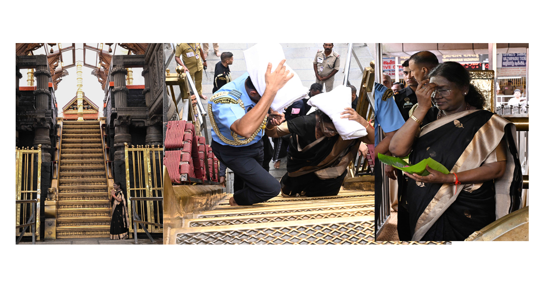 konnivartha.com; രാജ്യത്തിലെ പൗരന്മാരുടെ ക്ഷേമത്തിനും സമൃദ്ധിക്കും വേണ്ടി അയ്യപ്പ സ്വാമിയുടെ തിരു സന്നിധിയില് രാഷ്ട്രപതി ദ്രൗപദി മുർമു പ്രാര്ഥിച്ചു . ശബരിമലയില് ദര്ശനവും പൂജയും നടത്തി മടങ്ങി . നാല് ദിവസത്തെ കേരള സന്ദര്ശനത്തിനു എത്തിയ പ്രഥമ വനിതയുടെ ആദ്യ പരിപാടി ശബരിമല ദര്ശനമായിരുന്നു . ഇന്നലെ വൈകിട്ട് കേരളത്തില് എത്തിയ രാഷ്ട്രപതിയെ തിരുവനന്തപുരം എയർഫോഴ്സ് ടെക്നിക്കൽ ഏര്യയില് വെച്ച് ഗവർണർ രാജേന്ദ്ര വിശ്വനാഥ് അർലേക്കർ, മുഖ്യമന്ത്രി പിണറായി വിജയൻ, കേന്ദ്ര സഹമന്ത്രി ജോർജ് കുര്യൻ, മേയർ ആര്യാരാജേന്ദ്രൻ, ആൻ്റണി രാജു എം.എൽ.എ, ചീഫ് സെക്രട്ടറി ഡോ. എ ജയതിലക്, മറ്റ് ഉന്നത ഉദ്യോഗസ്ഥർ എന്നിവർ ചേർന്ന് സ്വീകരിച്ചു . ഇന്ന് രാവിലെ ഹെലികോപ്റ്ററില് കോന്നി പൂങ്കാവ് രാജീവ്ഗാന്ധി ഇന്ഡോര് സ്റ്റേഡിയത്തില് എത്തിയ രാഷ്ട്രപതി റോഡ് മാര്ഗം പമ്പയിലേക്ക് തിരിച്ചു . കാനന യാത്ര ചെയ്തു…