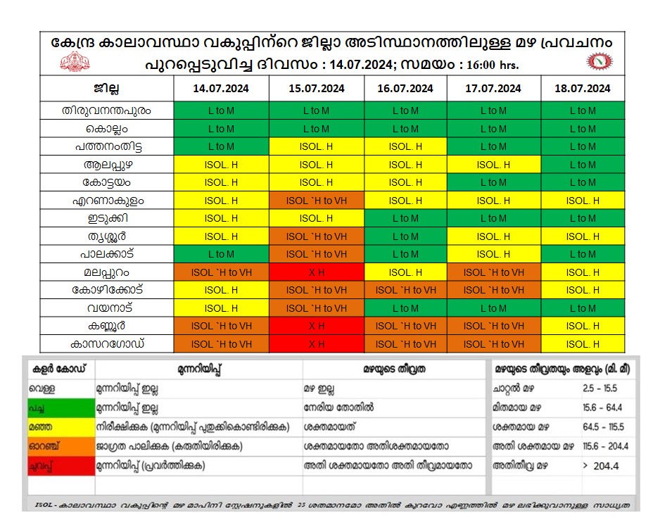Read Moreകനത്ത മഴ: അഞ്ച് ജില്ലകളിലെ വിദ്യാഭ്യാസ സ്ഥാപനങ്ങൾക്ക് നാളെ അവധി(15.07.2024)