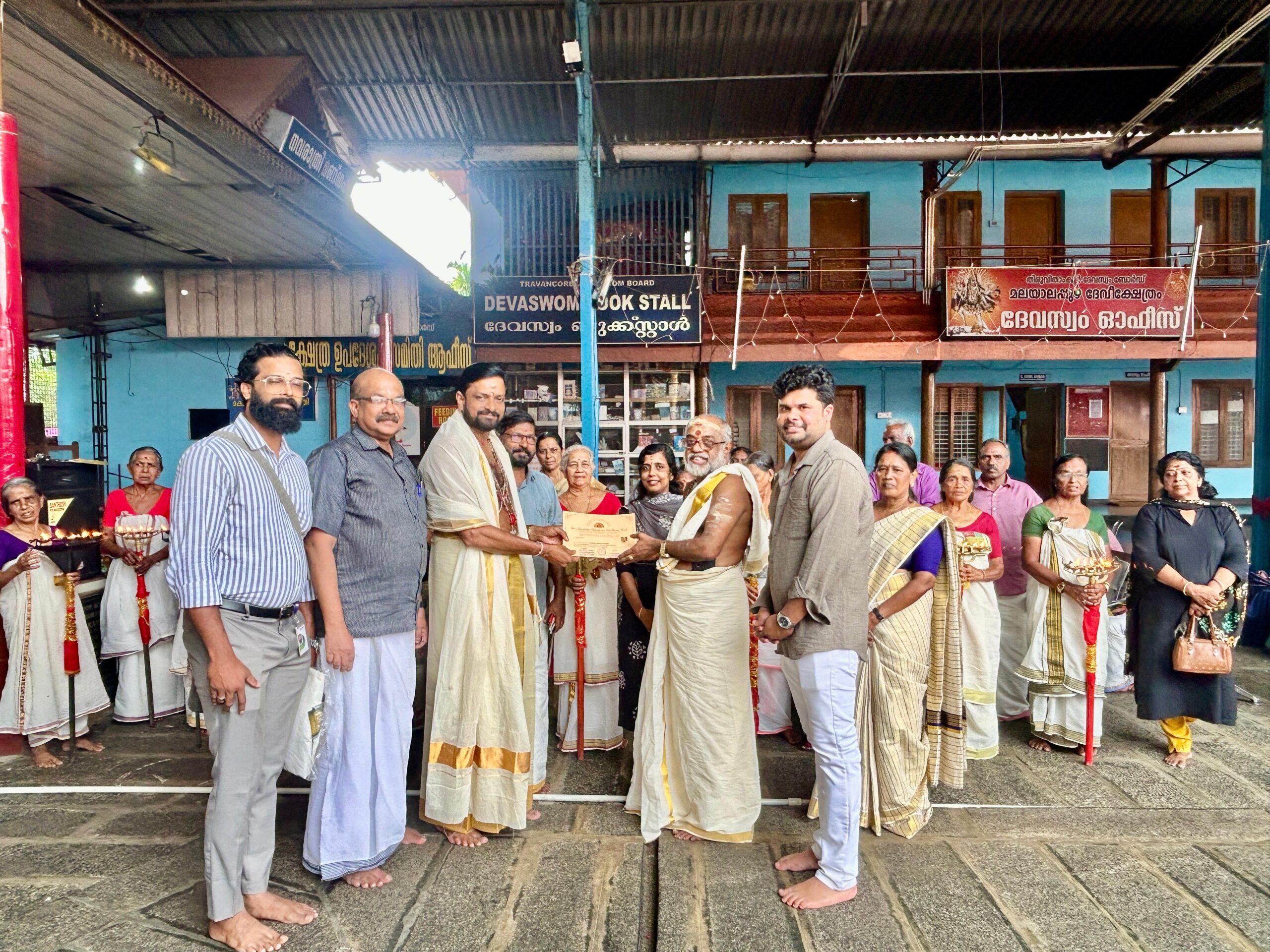 konnivartha.com/ മലയാലപ്പുഴ: പത്തനംതിട്ട ചുട്ടിപ്പാറ ശ്രീ ഹരിഹര മഹാദേവർ ക്ഷേത്രം ട്രസ്റ്റ് അംഗത്വ സർട്ടിഫിക്കറ്റിന്റെ വിതരണ ഉദ്ഘാടനം നടത്തി. മലയാലപ്പുഴ ദേവി ക്ഷേത്രത്തിൽ നടന്ന ചടങ്ങിൽ മലയാലപ്പുഴ ക്ഷേത്രം തന്ത്രി അടിമുറ്റത്തു മഠം ബ്രഹ്മശ്രീ സുരേഷ് ഭട്ടതിരിപ്പാട് ചുട്ടിപ്പാറ ക്ഷേത്രം ട്രസ്റ്റ് ചെയർമാൻ മോക്ഷഗിരി മഠം ഡോ. രമേഷ് ശർമ്മയിൽ നിന്നും അംഗത്വ സർട്ടിഫിക്കറ്റ് ഏറ്റു വാങ്ങി വിതരണ ഉദ്ഘാടനം നിർവഹിച്ചു. ചുട്ടിപ്പാറ ശ്രീ ഹരിഹര മഹാദേവർ ക്ഷേത്രം ട്രസ്റ്റ് സെക്രട്ടറി എം. ആർ. വേണുനാഥ്, എസ്.നിശാന്ത്. കമ്മറ്റി അംഗങ്ങളായ ശ്യാമള സോമൻ, ആർ.സോമൻ, ഹരിദാസ് മലയാലപ്പുഴ എന്നിവർ സന്നിഹിതരായിരുന്നു