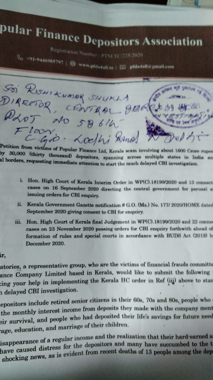പോപ്പുലർ ഫിനാൻസ് തട്ടിപ്പ്: സി ബി ഐ കൊച്ചി യൂണിറ്റ് അന്വേഷിക്കും