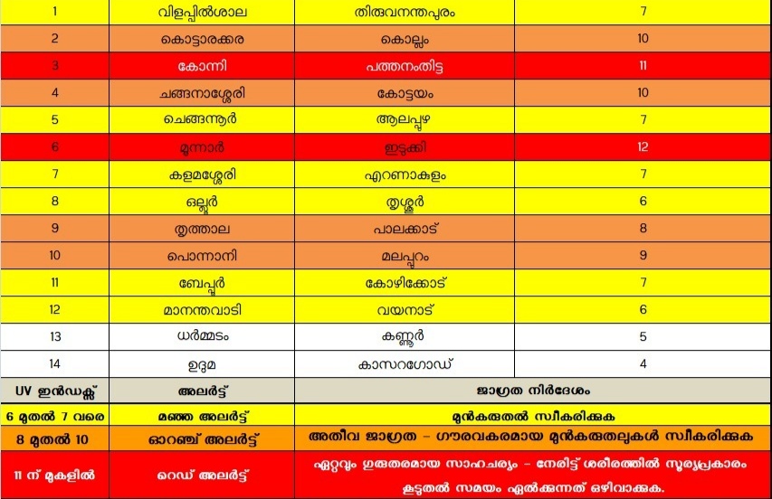 കേരളത്തിൽ ഉയർന്ന അൾട്രാവയലറ്റ് :കോന്നിയിൽ രേഖപ്പെടുത്തി