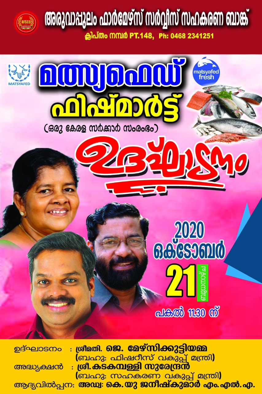 കോന്നി വാര്ത്ത : കേരള സർക്കാരിന്റെ ഭക്ഷ്യ സുരക്ഷാ പദ്ധതിയുടെ ഭാഗമായി അരുവാപ്പുലം ഫാർമേഴ്സ് സർവീസ് സഹകരണ ബാങ്കിന് അനുവദിച്ച മത്സ്യഫെഡ് ഫിഷ് മാർട്ടിന്റെ ഔപചാരികമായ ഉദ്ഘാടനം 2020 ഒക്ടോബർ മാസം 21-ന് രാവിലെ 11.30ന് കേരള സഹകരണ വകുപ്പ് മന്ത്രി കടകംപള്ളി സുരേന്ദ്രന്റെ അദ്ധ്യക്ഷതയിൽ ചേരുന്ന ഓൺലൈൻ യോഗത്തിൽ കേരള ഫിഷറീസ് തുറമുഖ വകുപ്പ് മന്ത്രി ജെ മെഴ്സിക്കുട്ടിയമ്മ നിർവഹിക്കും . കോന്നിഎം എല് എ അഡ്വ: കെ യു ജനീഷ്കുമാർ ആദ്യവില്പന നിർവഹിക്കും. കോവിഡ് മാനദണ്ഡങ്ങൾ പൂർണ്ണമായി പാലിച്ച് നടത്തുന്ന യോഗത്തിൽ വിവിധ രാഷ്ട്രീയ സാമൂഹ്യ സാംസ്ക്കാരിക നേതാക്കൻമാർ പങ്കെടുക്കുമെന്ന് ബാങ്ക്പ്രസിഡന്റ് കോന്നി വിജയകുമാർ മാനേജിംഗ് ഡയറക്ടർ സലിൽ വയലാത്തല എന്നിവർ അറിയിച്ചു.