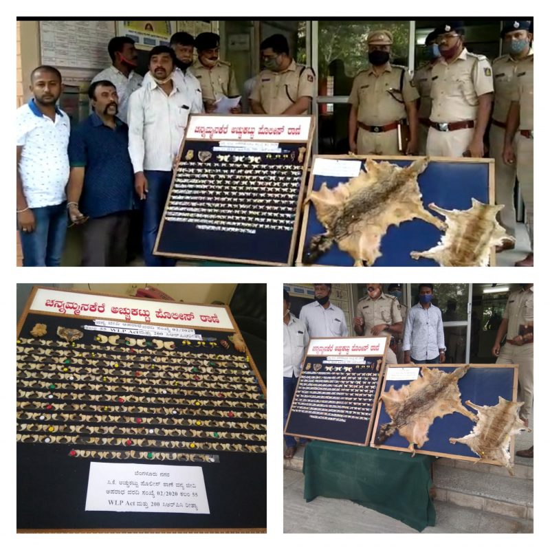 നാനൂറ് പുലിനഖങ്ങളും ആറു കടുവനഖങ്ങളുമായി നാലുപേർ പിടിയിൽ. ബന്ദിപ്പൂർ,തുമകൂരു, ബെല്ലാരി, നാഗർഹോളെ വനമേഖലകളിൽനിന്നും ആന്ധ്രാപ്രദേശിലെ വിവിധ പ്രദേശങ്ങളിൽനിന്നുമാണ് ഇവ ശേഖരിച്ചതെന്നാണ് പോലീസ്സിന്‍റെ കണ്ടെത്തൽ.