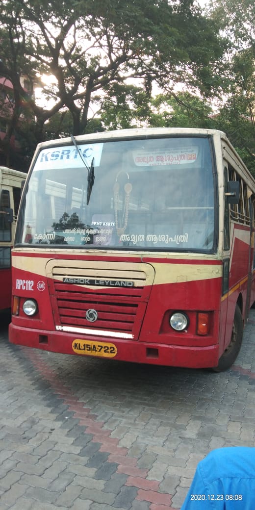 കോന്നി വാര്ത്ത ഡോട്ട് കോം : കോന്നി കെ എസ്സ് ആര് ടി സി ഡിപ്പോയില് നിന്നും കോന്നി -അമൃത ആശുപത്രി ബസ്സ് സര്വീസ് പുനരാരംഭിച്ചു . ഇന്ന് ബുധന് ( 23/12/2020 )രാവിലെ 4.30 നു കോന്നിയില് നിന്നും പുറപ്പെട്ടു . ഉച്ചയ്ക്ക് 2 മണിയ്ക്ക് അമൃതയില് നിന്നും കോന്നിയ്ക്കും സര്വീസ് നടത്തി . കോന്നി കോട്ടയം ഫാസ്റ്റും ആരംഭിച്ചു . കോന്നി കോട്ടയം ബസ്സ് രാവിലെ 5 . 30 നു കോന്നി കെ എസ്സ് ആര് ടി സി ഡിപ്പോയില് നിന്നുംആരംഭിച്ചു