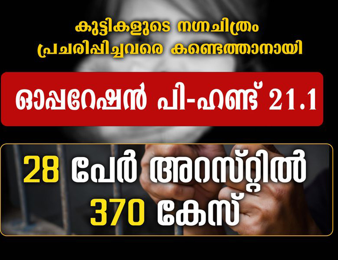 കോന്നി വാര്ത്ത ഡോട്ട് കോം : സൈബര്ലോകത്ത് കുട്ടികളുടെ നഗ്നചിത്രങ്ങളും ദൃശ്യങ്ങളും തിരയുന്നവരെയും കൈമാറ്റം ചെയ്യുന്നവരേയും കണ്ടെത്താനായി പോലീസ് നടത്തിയ സംസ്ഥാന വ്യാപകപരിശോധനയില് 28 പേര് അറസ്റ്റിലായി. ഓപ്പറേഷൻ പി-ഹണ്ട് 21.1 എന്ന് നാമകരണം ചെയ്ത റെയ്ഡില് 370 കേസുകള് രജിസ്റ്റര് ചെയ്തു. ജില്ലാ പോലീസ് മേധാവിമാരുടെ നേതൃത്വത്തിലുള്ള 310 അംഗസംഘം ഞായറാഴ്ച വെളുപ്പിനാണ് റെയ്ഡ് ആരംഭിച്ചതെന്ന് സൈബര് ഡോം നോഡല് ഓഫീസര് എ.ഡി.ജി.പി മനോജ് എബ്രഹാം അറിയിച്ചു.