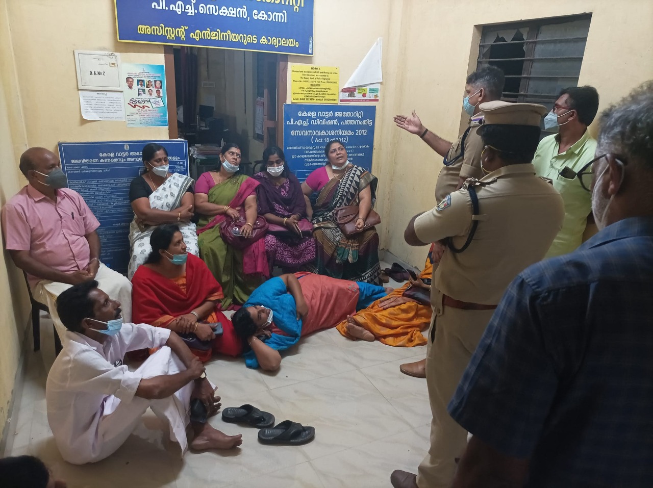 ഇന്ന് രാവിലെ മുതല് കോന്നി പഞ്ചായത്തിലെ ബഹു ഭൂരിപക്ഷം ജന പ്രതിനിധികളും രാഷ്ട്രീയം മറന്നു കൊണ്ട് കുടിവെള്ളത്തിനു വേണ്ടി കോന്നി മിനി സിവില് സ്റ്റേഷനില് ഉള്ള ജല വിഭവ വകുപ്പ് ഓഫീസിനു മുന്നില് കുത്തിയിരുപ്പ് സമരം നടത്തി . സമരം രാത്രി പിന്നിട്ടതോടെ നാളെ രാവിലെ പതിനൊന്നു മണിയ്ക്ക് മോട്ടോര് നന്നാക്കാന് നടപടി സ്വീകരിക്കും എന്ന് ജല വിഭവ വകുപ്പ് അധികാരികള് ജന പ്രതിനിധികള്ക്ക് ഉറപ്പ് നല്കി .ഇതോടെ താല്കാലികമായി സമരം അവസാനിപ്പിച്ചു .