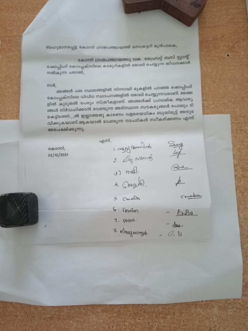 Read Moreകോന്നി പഞ്ചായത്ത് ഷോപ്പിംഗ് കോംപ്ലക്സ്സിലെ ശുചിമുറി പ്രവര്ത്തനക്ഷമമാക്കണം : 8 വനിതകളുടെ ആവശ്യം