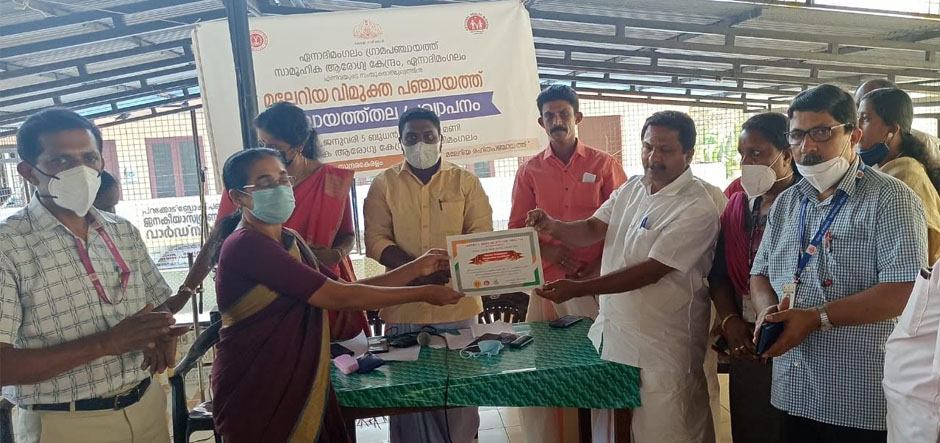 ഏനാദിമംഗലത്തിന് മലേറിയ വിമുക്ത പഞ്ചായത്ത് പദവി
