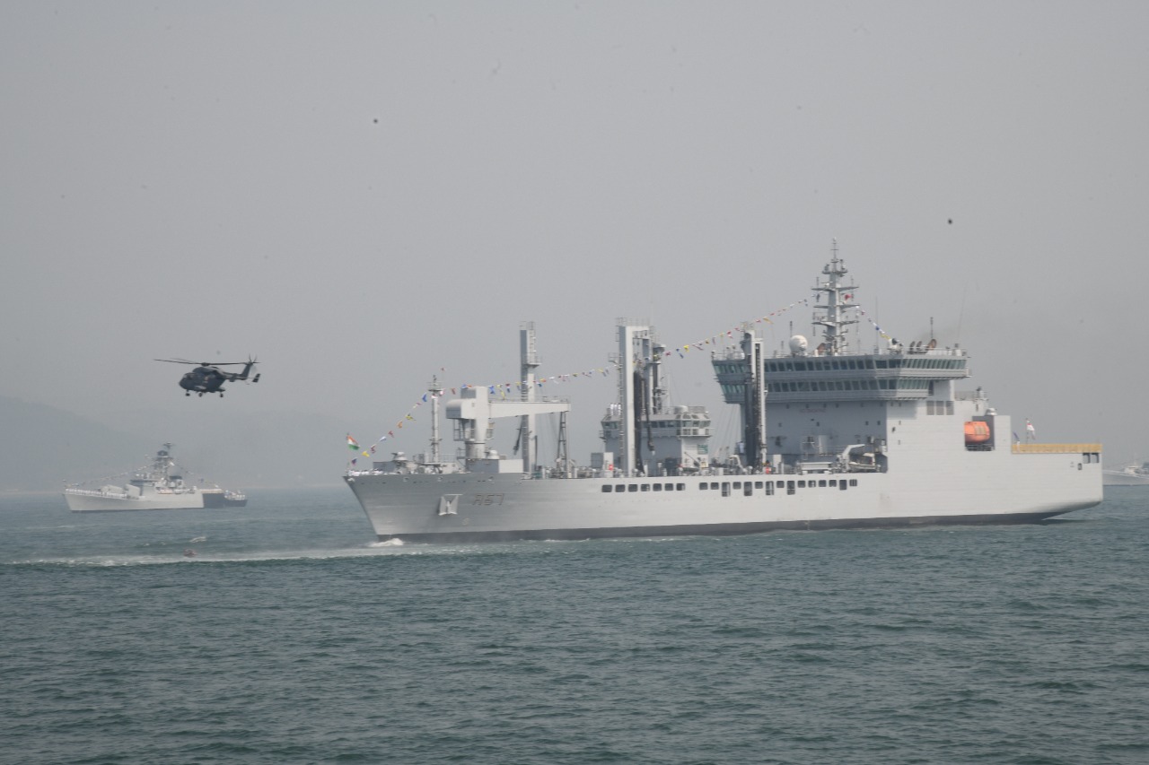After a 21-Gun Salute and Ceremonial Guard of Honour, the President embarked on the Presidential yacht, INS Sumitra, an indigenously built Naval Offshore Patrol Vessel designated as the Presidential yacht. The President was received by the Hon’ble Raksha Mantri Shri Rajnath Singh and Admiral R Hari Kumar, the Chief of Naval Staff. The Yacht sailed past 44 ships from the Navy, Coast Guard, SCI and MoES lined up in four columns at anchorage off Visakhapatnam, exhibiting the nation’s maritime power in full display. A spectacular flypast was conducted as a part of the static review of the Fleet. During the final stage of the review, a mobile column of warships and submarines carried out high-speed steam past alongside the Presidential yacht. Several enthralling waterfront activities by Parade of Sails, Search and Rescue Demonstration at Sea, Aerobatics by Hawk aircraft and Water Para Jumps by the elite Marine Commandos (MARCOS) held the guests mesmerised.