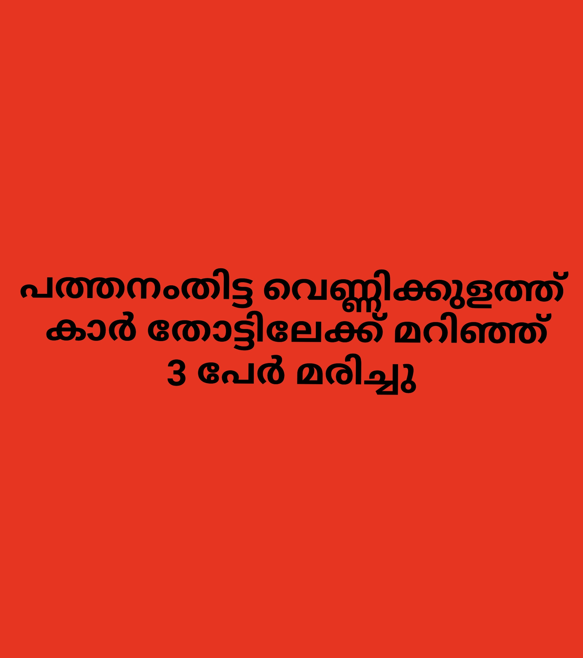 Konnivartha. Com :പത്തനംതിട്ട വെണ്ണിക്കുളത്ത് കാർ തോട്ടിലേയ്ക്കു മറിഞ്ഞു മരിച്ചത് കുമളി സ്വദേശികൾ . കുമളി ചക്കുപള്ളം വരയന്നൂർ വീട്ടിൽ ചാണ്ടി മാത്യു, ഫെബ ചാണ്ടി, ബ്ലസി ചാണ്ടി എന്നിവരാണ് അപകടത്തിൽ മരിച്ചത്. ചാണ്ടി മാത്യുവിന്റെ മക്കളാണ് മരിച്ച രണ്ടു സ്ത്രീകൾ