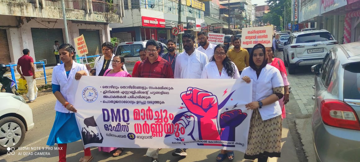 konnivartha.com/ പത്തനംതിട്ട : തൊഴിലും, തൊഴിൽ സ്ഥാപനങ്ങളും സംരക്ഷിക്കണമെന്നാവശ്യപ്പെട്ടു മെഡിക്കൽ ടെക്നീഷ്യരും, ഉടമകളും ചേര്ന്ന് പത്തനംതിട്ട ഡി എം ഒ ഓഫീസിലേക്ക് മാർച്ച് നടത്തി. ക്ലിനിക്കൽ എസ്റ്റാബ്ലിഷ്മെന്റ് നിയമത്തിന്റെ ഭാഗമായി പ്രസിദ്ധീകരിച്ച മിനിമം സ്റ്റാൻഡേർഡിലെ അപാകതകൾ പരിഹരിക്കുക.തൊഴിലും, തൊഴിലിടങ്ങളും സംരക്ഷിക്കുക പൊതുജനാരോഗ്യ സംരക്ഷണം ഉറപ്പു വരുത്തുക എന്നീ വിവിധ ആവശ്യങ്ങൾ ഉയർത്തിയായിരുന്നു കേരളാ പാരാ മെഡിക്കൽ കോർഡിനേഷൻ കമ്മറ്റിയുടെ ആഭിമുഖ്യത്തിൽ മാർച്ച് സംഘടിപ്പിച്ചത്. സെന്റർ ജംഗ്ഷനിൽ നിന്നാരംഭിച്ച മാർച്ച് കലക്ടറേറ്റിനു മുന്നിൽ അവസാനിച്ചു. വ്യാപാരി വ്യവസായി ജില്ലാ സെക്രട്ടറി റോഷൻ ജേക്കബ് ധർണ്ണ ഉദ്ഘാടനം ചെയ്തു. നിലവിലുള്ള തൊഴിലും തൊഴിൽ സ്ഥാപനങ്ങളും നിലനിർത്തിക്കൊണ്ടാകണം നിയമം വരേണ്ടതെന്നും, നിലവിൽ പ്രവർത്തിക്കുന്ന സ്ഥാപനങ്ങളെയും ടെക്നീഷ്യന്മാരെയും പരിഗണിക്കാതെ നിയമം നടപ്പിലാക്കരുതെന്നും ധര്ണ്ണ ഉദ്ഘാടനം ചെയ്തുകൊണ്ട് അദ്ദേഹം പറഞ്ഞു.അനിൽ കെ രവി, ലിസി ജോസ്, സിഐടിയു ജില്ലാ സെക്രട്ടറി ടികെ അനിൽകുമാർ,…