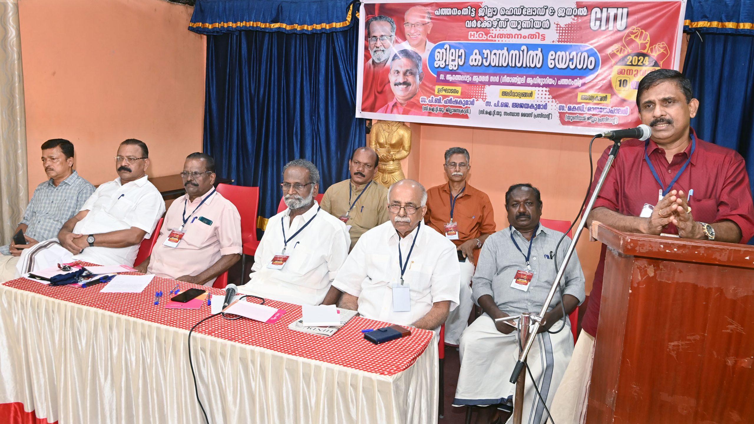konnivartha.com: പത്തനംതിട്ട : ജനുവരി 20 ന് നടക്കുന്ന മനുഷ്യ ചങ്ങലയിൽ മുഴുവൻ ചുമട്ടു തൊഴിലാളികളും കുടുംബാംഗങ്ങളും പങ്കെടുക്കും. പത്തനംതിട്ട ജില്ലാ ഹെഡ് ലോഡ് & ജനറൽ വർക്കേഴ്സ് യൂണിയൻ (CITU).യൂണിയൻ ജില്ലാ കൗൺസിൽ യോഗം ആനത്തലവട്ടം ആനന്ദൻ നഗറിൽ ( ഗീതാഞ്ജലി ഓഡിറ്റോറിയം ) നടന്നു. സി ഐ ടി യു പത്തനംതിട്ട ജില്ലാ സെക്രട്ടറി പി. ബി. ഹർഷകുമാർ ഉദ്ഘാടനം ചെയ്തു. യൂണിയൻ ജില്ലാ പ്രസിഡന്റ് കെ. സി. രാജഗോപാലൻ Ex MLA അധ്യക്ഷത വഹിച്ച യോഗത്തിൽ ജനറൽ സെക്രട്ടറി മലയാലപ്പുഴ മോഹനൻ റിപ്പോർട്ട് അവതരിപ്പിച്ചു. സി ഐ ടി യു സംസ്ഥാന വൈസ് പ്രസിഡന്റ് പി. ജെ. അജയകുമാർ, എൻ. കെ. ജയപ്രകാശ്, കെ.കെ.സുകുമാരൻ, ആർ. ഉണ്ണികൃഷ്ണപിള്ള ExMLA എന്നിവർ അഭിവാദ്യം ചെയ്തു.ടി. വി. സ്റ്റാലിൻ സ്വാഗതവും പി.ജി. പ്രസാദ് നന്ദിയും…