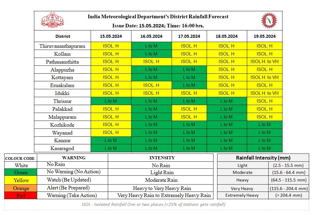 16-05-2024: പത്തനംതിട്ട, ഇടുക്കി, എറണാകുളം