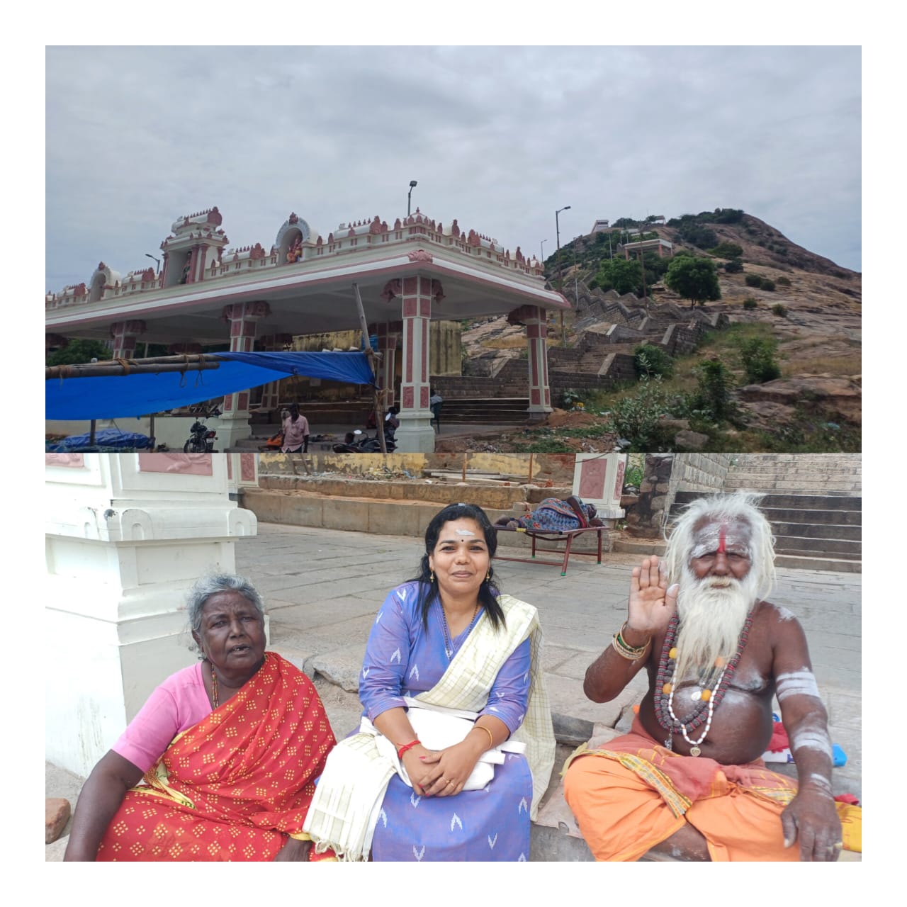 40 വർഷത്തോളമായി പഴനിയിലും ഹിഡുമ്പൻ മലയുടെ കവാടത്തിൽ ഭിക്ഷയെടുക്കുന്ന ദുരൈസ്വാമി, സുന്ദരമാൾ എന്നിവർക്കൊപ്പം മഞ്ജു വിനോദ് ഇലന്തൂർ.