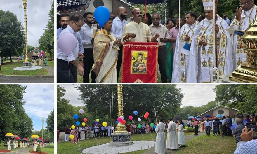 ന്യൂയോര്‍ക്ക്: ഭാരതീയ പാരമ്പര്യത്തിന്റെയും  സീറോ മലബാർ സഭയുടെയും അഭിമാനം ഉയർത്തി  റോക്ക്‌ലാന്‍ഡ് വെസ്ലി ഹില്‍സിലുള്ള ഹോളി ഫാമിലി സീറോ മലബാര്‍ ചര്‍ച്ചിന്റെ കൊടിമരം ചിക്കാഗോ രൂപതാധ്യക്ഷന്‍ മാര്‍ ജോയി ആലപ്പാട്ട് വെഞ്ചരിച്ചു. ഇതേ തുടര്‍ന്ന് ഈമാസം 16,17,18 തീയതികളില്‍ നടക്കുന്ന വി. കന്യകാമറിയത്തിന്റെ സ്വര്ഗാരോഹണ തിരുന്നാളിന് കൊടിയേറ്റവും നടന്നു.