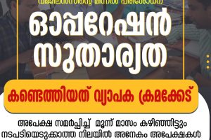 konnivartha.com: സംസ്ഥാനത്തെ തിരഞ്ഞെടുത്ത 88 വില്ലേജ് ഓഫീസുകളിൽ “ഓപ്പറേഷൻ സുതാര്യത” എന്ന പേരിൽ (20/02/2024) മുതൽ വിജിലൻസ് നടത്തി വരുന്ന വ്യാപക മിന്നൽ പരിശോധനയിൽ വ്യാപക ക്രമക്കേടുകൾ കണ്ടെത്തി. വില്ലേജ് ഓഫീസുകളിൽ നിന്നും പൊതു ജനങ്ങൾക്ക് ലഭിക്കുന്ന വിവിധ സർക്കാർ സേവനങ്ങൾ വേഗത്തിലാക്കുക,... Read more »