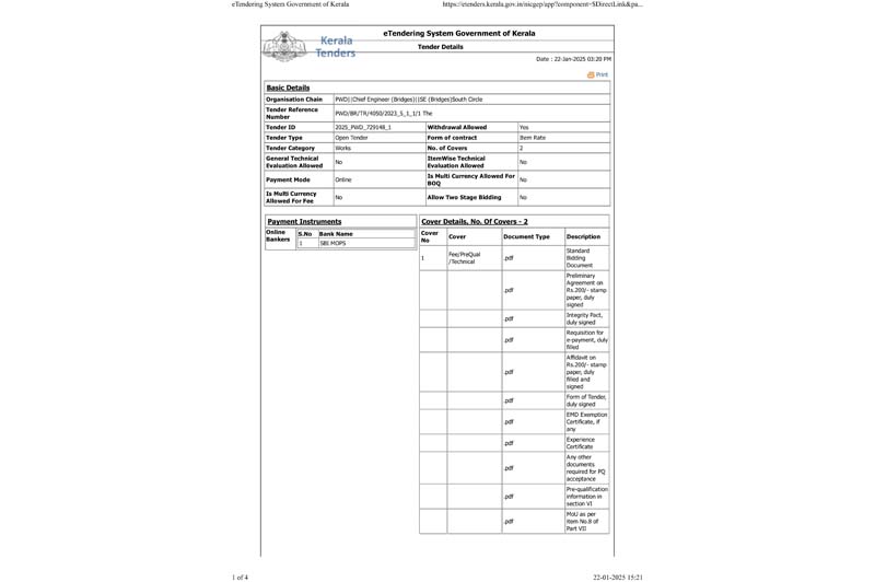 konnivartha.com: കോന്നി മണ്ഡലത്തിലെ ചിറ്റൂർക്കടവിൽ പുതിയ പാലം നിർമ്മിക്കുന്നതിന് 12 കോടി രൂപയുടെ പ്രവർത്തി പൊതുമരാമത്ത് വകുപ്പ് ടെണ്ടർ ചെയ്തതായി അഡ്വ കെ യു ജനീഷ് കുമാർ എം എൽ എ അറിയിച്ചു.ഫെബ്രുവരി 3 വരെയാണ് എ ക്ലാസ് കരാറുകാർക്ക് അപേക്ഷ നൽകാൻ കഴിയുന്ന അവസാന തീയതി. ഫെബ്രുവരി 5 നു ടെണ്ടർ ഓപ്പൺ ചെയ്യും.