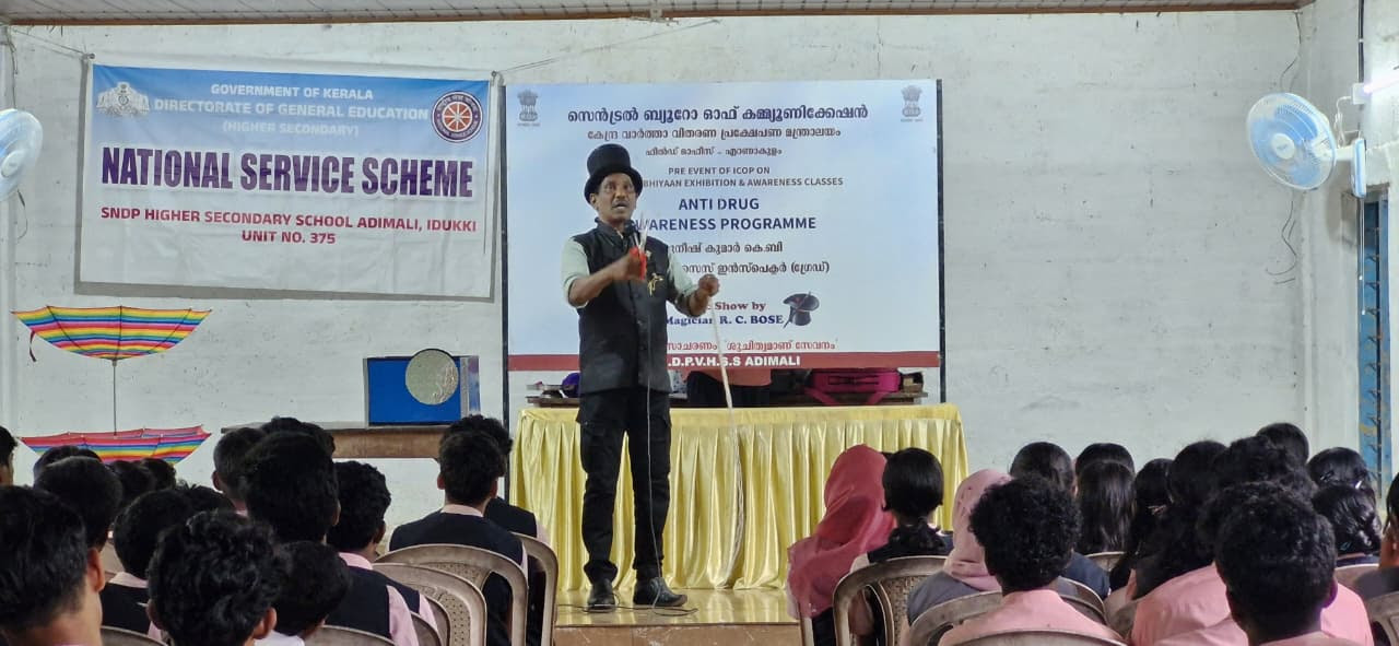 konnivartha.com: കേന്ദ്ര വാർത്താ വിതരണ പ്രക്ഷേപണ മന്ത്രാലയത്തിന് കീഴിലുള്ള സെൻട്രൽ ബ്യൂറോ ഓഫ് കമ്മ്യൂണിക്കേഷൻ എറണാകുളം യൂണിറ്റിന്റെ ആഭിമുഖ്യത്തിൽ അടിമാലി വൊക്കേഷണൽ ഹയർസെക്കൻഡറി സ്കൂളിൽ ലഹരി വിരുദ്ധ ബോധവൽക്കരണ സന്ദേശവുമായി മാജിക് ഷോ സംഘടിപ്പിച്ചു. മജീഷ്യൻ ആർ. സി ബോസ് നേതൃത്വം നൽകി. സ്കൂൾ പ്രിൻസിപ്പൽ ശോഭ, സെൻട്രൽ ബ്യൂറോ ഓഫ് കമ്മ്യൂണിക്കേഷൻ എറണാകുളം ഫീൽഡ് പബ്ലിസിറ്റി ഓഫീസർ അബ്ദു മനാഫ്, സി.ബി.സി ഉദ്യോഗസ്ഥ ഹനീഫ് എന്നിവർ സംസാരിച്ചു. സെപ്റ്റംബർ 26 വരെ അടിമാലി ഗ്രാമപഞ്ചായത്ത് ടൗൺഹാളിൽ സംഘടിപ്പിച്ചിട്ടുള്ള ഗവൺമെൻ്റ് പദ്ധതികളെ കുറിച്ചുള്ള ബോധവൽക്കരണ പരിപാടിയുടെ ഭാഗമായാണ് മാജിക് സംഘടിപ്പിച്ചത്.