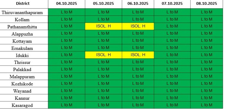 05/10/2025 : പത്തനംതിട്ട, ഇടുക്കി