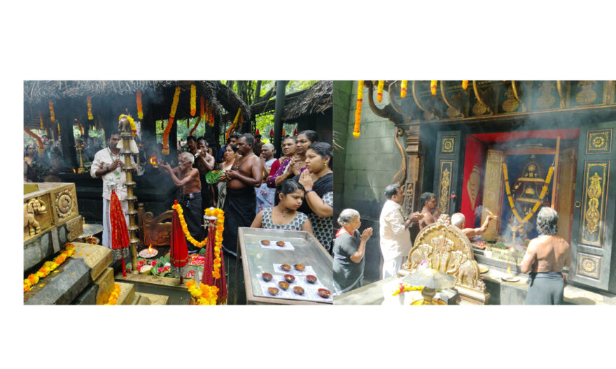 konnivartha.com; കോന്നി : ശബരിമലയും അച്ചന്കോവിലുമടക്കമുള്ള തൊള്ളായിരത്തി തൊണ്ണൂറ്റി ഒമ്പത് മലകള്ക്ക് ഉടയവനായ ശ്രീ കല്ലേലി ഊരാളി അപ്പൂപ്പന് എല്ലാ മലയാള മാസം ഒന്നാം തീയതി സമര്പ്പിക്കുന്ന ഒമ്പത് കൂട്ടം പ്രകൃതി വിഭവം കൊണ്ടുള്ള നവാഭിഷേക പൂജ കോന്നി കല്ലേലി ഊരാളി അപ്പൂപ്പന് കാവില് പുലര്കാലത്ത് സമര്പ്പിച്ചു . തുടര്ന്ന് നിലവറ തുറന്ന് സ്വര്ണ്ണ മലക്കൊടിയ്ക്കും മല വില്ലിനും ഊട്ടും പൂജകളും അര്പ്പിച്ചു . മലകളുടെ അനുഗ്രഹത്തിന് വേണ്ടിദക്ഷിണ സമര്പ്പിച്ച് വസ്ത്രവും അടുക്കുകളും വെച്ച് തെണ്ടും തെരളിയും വറപൊടിയും മുളയരിയും കാര്ഷിക വിളകളും ചുട്ടും വറുത്തും പൊടിച്ചും പുഴുങ്ങിയും 41 തൃപ്പടികളില് സമര്പ്പിച്ചു പടി പൂജ നടത്തി .