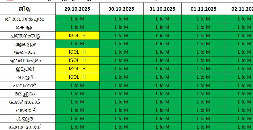 29/10/2025 : പത്തനംതിട്ട, കോട്ടയം, ഇടുക്കി, എറണാകുളം, തൃശൂർ