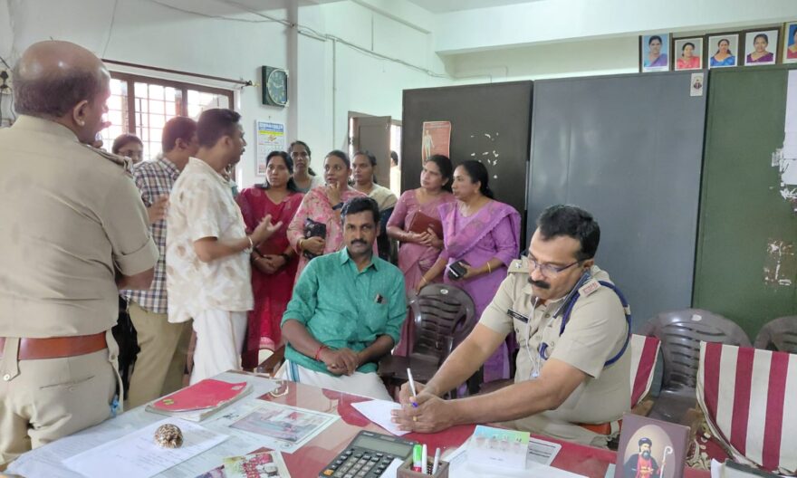സ്കൂൾ അധികൃതർ പൊലീസ് സ്റ്റേഷനിലെത്തി മൊഴി കൊടുത്ത ശേഷമാണ് കേസെടുക്കുന്നത്.സ്കൂളിലെ സിസിടിവി ദൃശ്യങ്ങളിൽ നിന്ന് തെളിവൊന്നും ലഭിച്ചിട്ടില്ല.പരിസരങ്ങളിലെ വിവിധ സിസിടിവി ക്യാമറകൾ പരിശോധിച്ചിട്ടില്ല .പരിശോധിക്കണം എന്ന് സ്കൂള് പി റ്റി എ ആവശ്യം ഉന്നയിച്ചു .