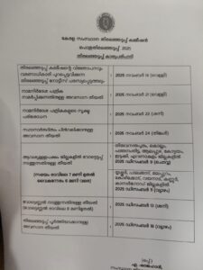 ആദ്യഘട്ടത്തില് തിരുവനന്തപുരം,കൊല്ലം, ആലപ്പുഴ, പത്തനംതിട്ട, കോട്ടയം, എറണാകുളം എന്നീ ഏഴു ജില്ലകളില് ഡിസംബര് ഒന്പതിനും രണ്ടാംഘട്ടത്തില് തൃശൂര്, പാലക്കാട്, മലപ്പുറം, കോഴിക്കോട്, വയനാട്, കണ്ണൂര്,കാസര്കോട് ജില്ലകളില് ഡിസംബര് 11നും വോട്ടെടുപ്പ് നടത്തും മാതൃകാ പെരുമാറ്റ ചട്ടം നിലവിൽ വന്നു
