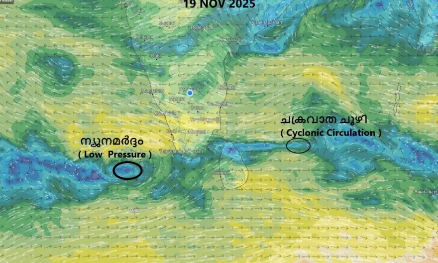 നവംബർ 22 ഓടെ തെക്ക് കിഴക്കൻ ബംഗാൾ ഉൾക്കടലിനു മുകളിൽ പുതിയ ന്യുനമർദ്ദം (Low Pressure) രൂപപ്പെടാൻ സാധ്യത. തുടർന്ന് പടിഞ്ഞാറ് – വടക്കുപടിഞ്ഞാറ് ദിശയിൽ സഞ്ചരിച്ച് നവംബർ 24-ഓടെ തെക്കൻ ബംഗാൾ ഉൾക്കടലിന്റെ മദ്ധ്യഭാഗത്ത് തീവ്രന്യുനമർദ്ദമായി (Depression) ശക്തിപ്പെടാൻ സാധ്യത. തുടർന്നുള്ള 48 മണിക്കൂറിനിടെ, പടിഞ്ഞാറ് – വടക്കുപടിഞ്ഞാറ് ദിശയിൽ സഞ്ചരിച്ച് തെക്കുപടിഞ്ഞാറൻ ബംഗാൾ ഉൾക്കടലിൽ വീണ്ടും ശക്തി പ്രാപിക്കാനും സാധ്യത.