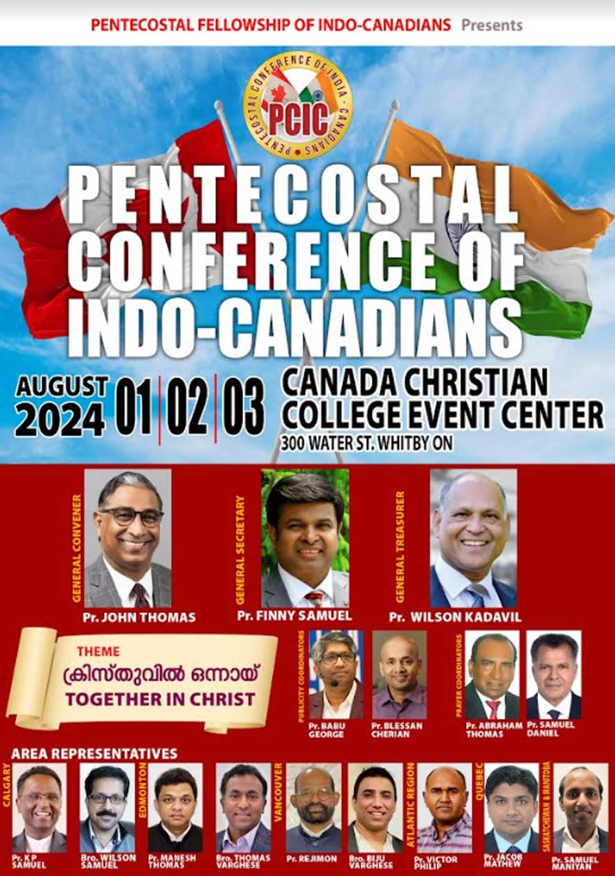 konnivartha.com: പെന്തിക്കോസ്റ്റൽ ഫെലോഷിപ്പ് ഓഫ് ഇൻഡോ-കനേഡിയൻസിന്റെ പ്രഥമ കോൺഫറൻസ് 2024 ഓഗസ്റ്റിൽ ടോറോന്റോയിൽ വച്ച് നടത്തപ്പെടുന്നതിന്റെ ക്രമീ കരണങ്ങൾ അവസാന ഘട്ടത്തിലേക്ക്. 10 പ്രൊവിൻസും മൂന്ന് ഫെഡറൽ ടെറിട്ടറിയുമുള്ള കാനഡ എന്ന വലിയ മനോഹരമായ രാജ്യത്ത് മലയാളികൾ കുടിയേറി തുടങ്ങിയിട്ട് 6 പതിറ്റാണ്ട് കഴിഞ്ഞു. 2024ിൽ എത്തി നിൽക്കുമ്പോൾ കാനഡയുടെ 10 പ്രൊവിൻസിലും മലയാളി പെന്തക്കോസ് സഭകളുടെ സാന്നിധ്യം ഇന്ന് ഉണ്ട്. കാലാകാലങ്ങളിൽ ഇമിഗ്രൻസ് ആയിട്ട് പല പ്രൊവിൻസിൽ താമസിക്കുന്നവരെ കൂടാതെ, സ്റ്റുഡൻറ് ആയിട്ട് പഠിക്കാൻ കടന്നുവന്നവര്, ഈ സ്ഥലങ്ങളെല്ലാം താമസിക്കുന്നു. പിൽക്കാലത്ത് ദൈവദാസന്മാർ വിശ്വാസികൾ ചേർന്ന് തുടങ്ങിയ പ്രാർത്ഥനാ കൂട്ടായ്മകൾ ഇന്ന് സഭകളായ രൂപാന്തരപ്പെട്ടു. അങ്ങനെ ആ സഭകൾ എല്ലാം കൂടിച്ചേർന്ന് നടത്തുന്ന കോൺഫറൻസ് ആണ് PCIC. 10 പ്രൊവിൻസുകളിൽനിന്നും നിന്നും നൂറിൽപരം സഭകളുടെ ആഭിമുഖ്യത്തിൽ നടത്തപ്പെടുന്ന കോൺഫറൻസ തുടങ്ങുന്നത് *2024 ഓഗസ്റ്റ് മാസം 1,…