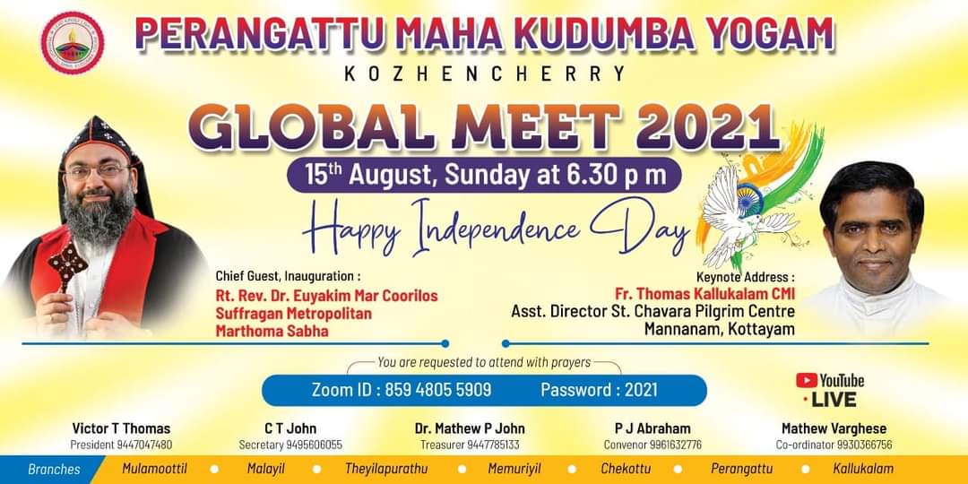 കോന്നി വാര്ത്ത ഡോട്ട് കോം : കോഴഞ്ചേരി പേരങ്ങാട്ട് മഹാ കുടുംബത്തിന്റെ ആഗോള സംഗമം ഓഗസ്റ്റ് 15 തീയതി zoom പ്ലാറ്റഫോമിൽ കൂടി നടത്തുമെന്ന് ഭാരവാഹികള് അറിയിച്ചു . പേരങ്ങാട്ട് മഹാ കുടുബത്തിൽ ഏഴ് ശാഖകൾ ഉണ്ട്. 1. മുളമൂട്ടിൽ 2. മലയിൽ 3. മേമുറിയിൽ 4. തേയിലപ്പുറത്ത് 5. പേരങ്ങാട്ട് 6. ചേകോട്ട് 7. കല്ലുകളം ഇത് കൂടാതെ ഉപശാഖകളിലുമായി ലോകത്തിന്റെ വിവിധ ഭാഗങ്ങളിൽ പേരങ്ങാട്ട് മഹാ കുടുംബാംഗങ്ങൾ ചിതറി പാർക്കുന്നു.തമ്മിൽ കാണുന്നതിനും ബന്ധങ്ങൾ പുതുക്കുന്നതിനും കഴിഞ്ഞ കാലങ്ങളിൽ കുടുംബ യോഗങ്ങൾ സജീവമായിരുന്നു . ഇന്നത്തെ പ്രത്യേക സാഹചര്യത്തിൽ നേരിൽ കാണുന്നതിനോ, കുടുംബ യോഗങ്ങൾ ചേരുന്നതിനോ സാധ്യമാകാത്ത അവസരത്തിൽ സോഷ്യൽ മിഡിയാ പ്ലാറ്റുഫോം പ്രയോജനപ്പെടുത്തി ലോകത്തിന്റെ വിവിധ ഭാഗങ്ങളിൽ ഇരുന്ന് കുടുംബാംഗങ്ങൾക്ക് ഒത്തു ചേരുന്നതിനെ സാധിക്കുന്നു എന്നത് പുതു പ്രതീക്ഷകൾ നൽകുന്ന കാര്യമാണ് എന്നും ഭാരവാഹികള്…