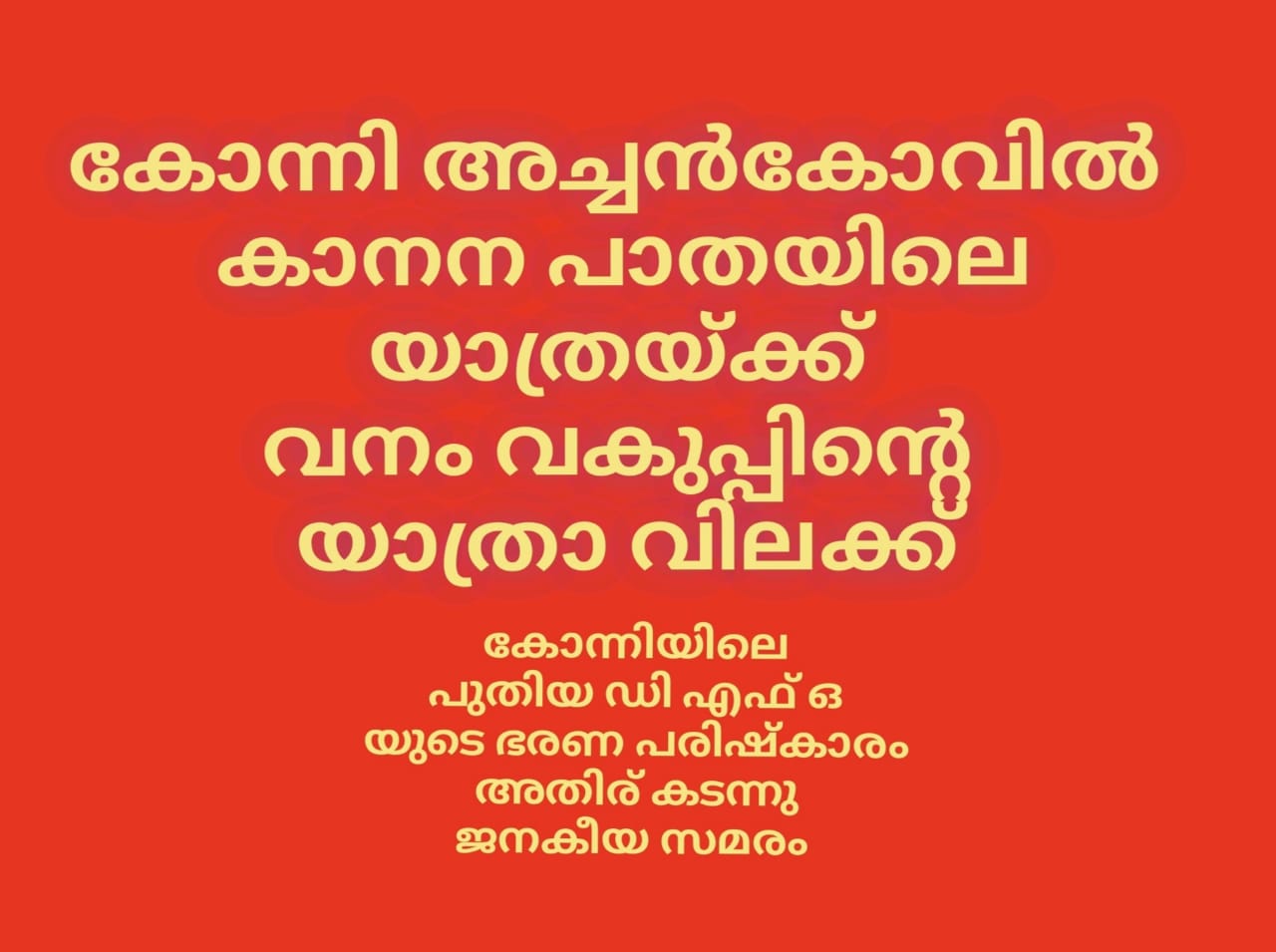 കോന്നി അച്ചന്കോവില് കാനന പാതയിലെ യാത്രയ്ക്ക് വനം വകുപ്പിന്റെ ” സഞ്ചാര വിലക്ക് ” :പുതിയ ഡി എഫ് ഒ യുടെ ഭരണ പരിഷ്കാരം ആണോ എന്ന് ജന സംസാരം : അതോ കല്ലേലി ചെക്ക് പോസ്റ്റിലെ വിലക്കോ konnivartha.com : കോന്നി കല്ലേലി അച്ചന് കോവില് കാനന പാതയിലൂടെ ആരും പോകരുത് എന്ന് നിയമം ഇല്ല . ജനങ്ങളുടെ പണം ഉപയോഗിച്ച് നിര്മ്മിച്ച റോഡ് ആണ് കല്ലേലി അച്ചന് കോവില് പാത . കഴിഞ്ഞ ദിവസം മുതല് കല്ലേലി ചെക്ക് പോസ്റ്റിലെ ചില ജീവനക്കാര് ഇത് വഴി അച്ചന് കോവിലിന് പോകരുത് എന്ന് വ്യാപകമായി പറയുന്നു . കാരണം പറയുന്നില്ല . പോകരുത് എന്ന് ആണ് പറയുന്നത് . കോന്നിയില് പുതിയ ഡി എഫ് ഒ വന്നതില് പിന്നെ ആണ് ഈ കര്ശന ഉപാധികള് .…