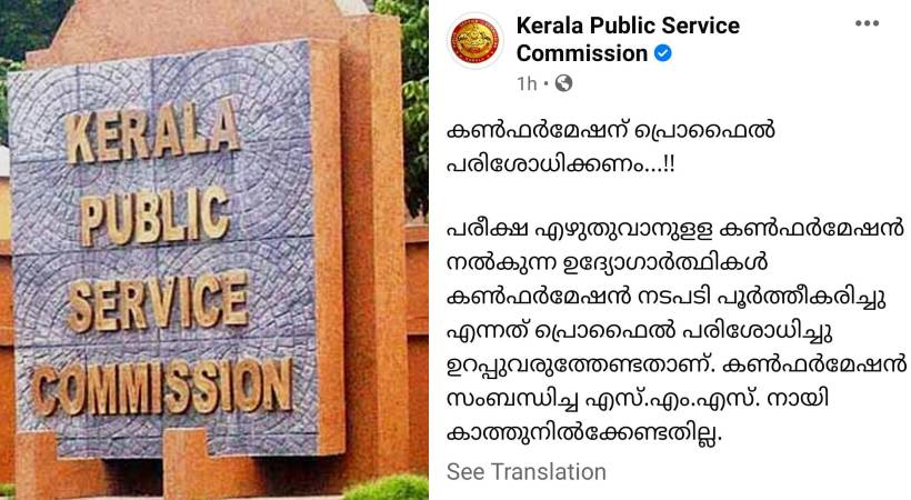 പരീക്ഷ എഴുതുവാനുളള കണ്ഫര്മേഷന് നല്കുന്ന ഉദ്യോഗാര്ത്ഥികള് കണ്ഫര്മേഷന് നടപടി പൂര്ത്തീകരിച്ചു എന്നത് പ്രൊഫൈല് പരിശോധിച്ചു ഉറപ്പുവരുത്തേണ്ടതാണെന്ന് കേരള പബ്ലിക് സര്വീസ് കമ്മീഷന് അറിയിച്ചു. കണ്ഫര്മേഷന് സംബന്ധിച്ച എസ്എംഎസിനായി കാത്തിരിക്കരുതെന്നും പിഎസ്സി നിര്ദ്ദേശിക്കുന്നു. പരീക്ഷ എഴുതുവാനുള്ള കണ്ഫര്മേഷന് വേണ്ടി ഓരോ ക്യാറ്റഗറിയേയും അടിസ്ഥാനപ്പെടുത്തി പിഎസ്സി എസ്എംഎസ് നോട്ടിഫിക്കേഷനിലൂടെ അറിയിക്കുന്നതാണ് പതിവ്. തുടര്ന്ന് പിഎസ്സിയുടെ സൈറ്റില് കയറി പരീക്ഷ കണ്ഫര്മേഷന് കൊടുത്താല് മാത്രമേ ഹാള്ടിക്കറ്റ് ലഭ്യമാകുകയുള്ളു. എന്നാല് എസ്എംഎസ് ലഭിക്കാത്തതിനാല് പരീക്ഷയുടെ കണ്ഫര്മേഷന് നല്കാന് കഴിയാത്തത് മൂലം ഉദ്യോഗസ്ഥര്ക്ക് പരീക്ഷകള് നഷ്ടപ്പെടുന്നത് സംബന്ധിച്ച് പരാതികള് ഉയര്ന്നിരുന്നു. ഈ സാഹചര്യത്തിലാണ് എസ്എംഎസ് എന്നത് ഒരു ഓര്മപ്പെടുത്തലായി മാത്രം കണ്ടാല്മതിയെന്ന നിലപാട് പിഎസ്സി വ്യക്തമാക്കുന്നത്. ഫെയ്സ്ബുക്കിലൂടെ ഇക്കാര്യം പിഎസ്സി അറിയിച്ചത്.