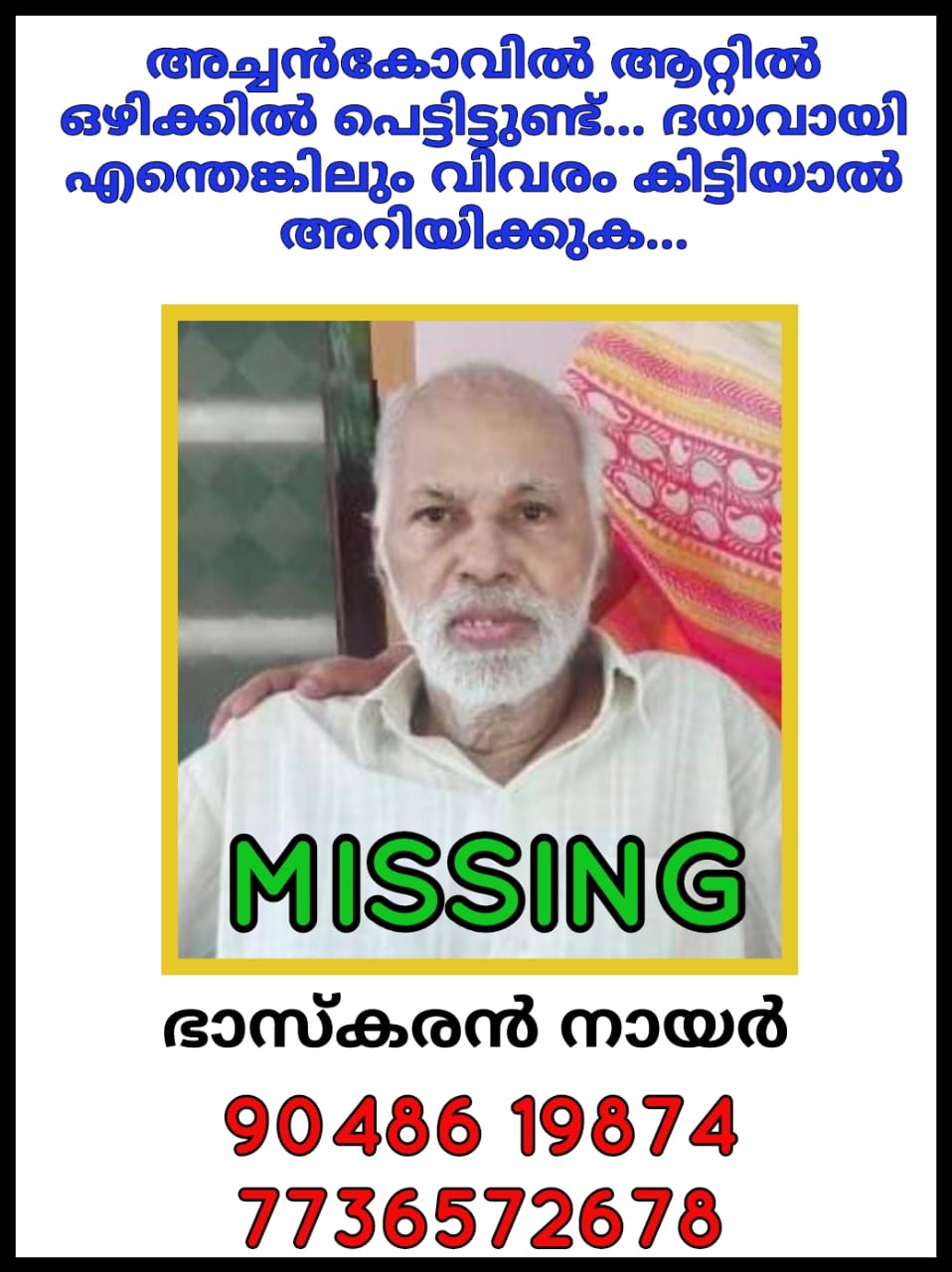 Read Moreകോന്നി അച്ചന് കോവില് നദിയില് മണ്ണാറത്തറ കടവില് വൃദ്ധന് കാല് തെറ്റി ആറ്റില് വീണു