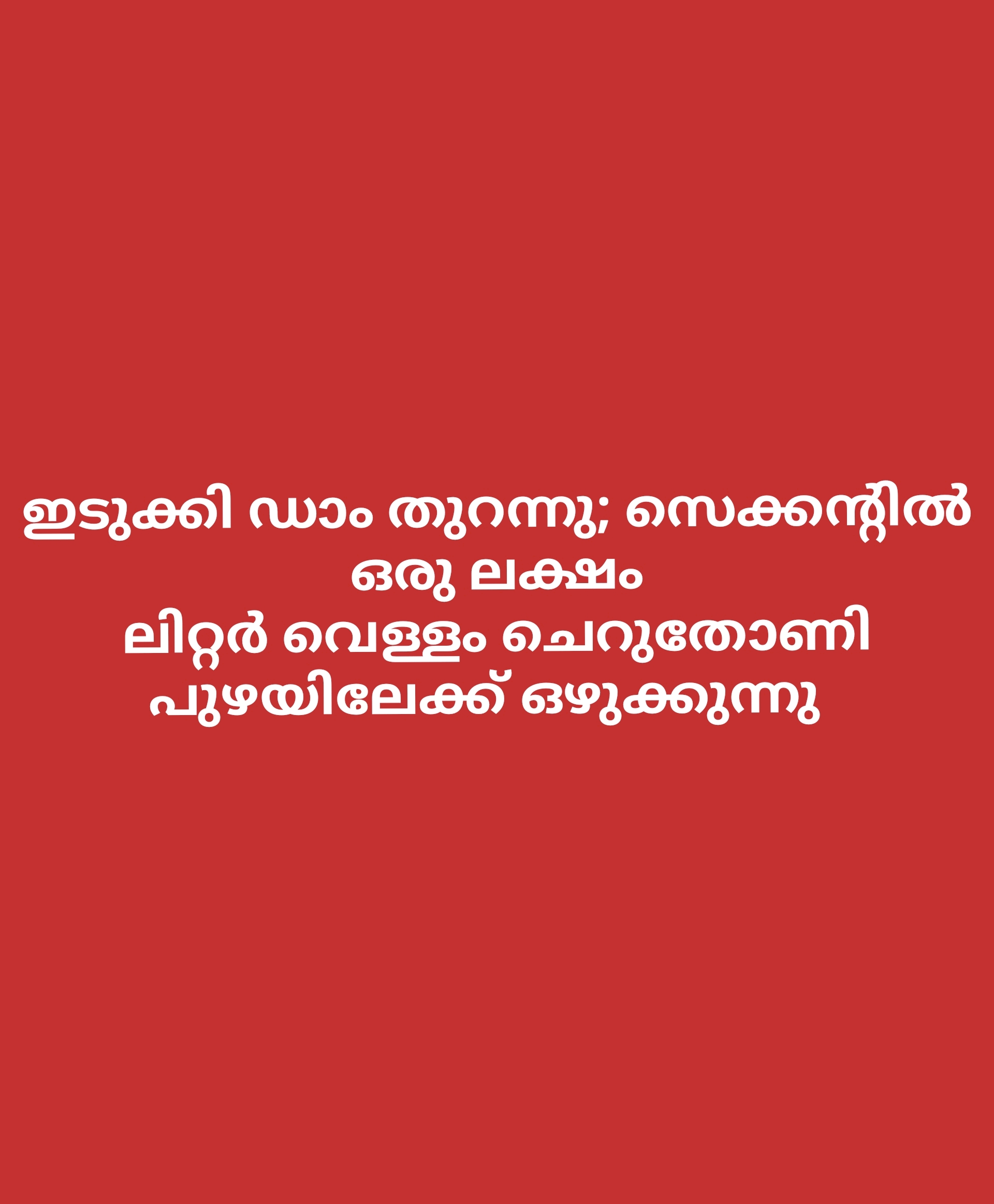 ഇടുക്കി ഡാം തുറന്നു; സെക്കന്റില് ഒരു ലക്ഷം ലീറ്റര് വെള്ളം ചെറുതോണി പുഴയിലേക്ക് ഒഴുക്കുന്നു