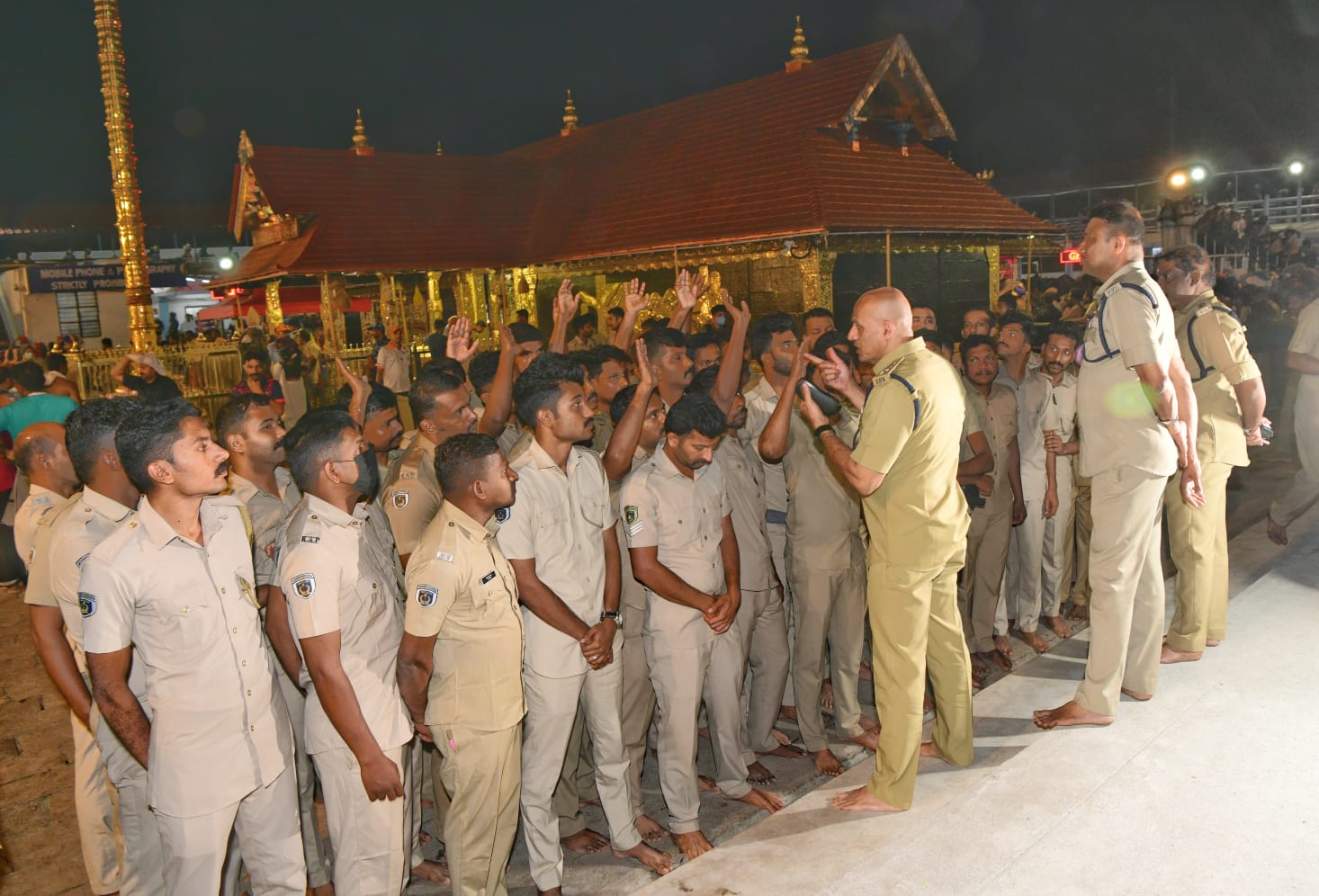 സന്നിധാനത്തെ തിരക്ക് നിയന്ത്രിക്കുക , രഹസ്യ അന്വേഷണം,; ബോംബ് സ്കോഡ് തുടങ്ങിയ ചുമതകൾക്കായി നിയോഗിക്കപ്പെട്ടിട്ടുള്ള രണ്ടാം ബാച്ച് പോലീസ് ഉദ്യോഗസ്ഥർ ചുമതലയേറ്റു. ശബരിമല ശ്രീധർമ്മശാസ്താ ഓഡിറ്റോറിയത്തിൽ സ്പെഷ്യൽ ഓഫീസർ എസ് പി കെ.ഇ. ബൈജു പുതുതായി ചുമതലയേൽക്കുന്ന ഉദ്യോഗസ്ഥർക്ക് ആവശ്യമായ നിർദേശങ്ങൾ നൽകി. ഡിസംബർ 6 വരെ 12 ദിവസമാണ് ബാച്ചിന് ഡ്യൂട്ടി.എട്ട് ഡി വൈ എസ് പി മാരുടെ കീഴിൽ 8 ഡിവിഷനുകളിൽ 27 സി ഐ,90 എസ് ഐ /എ എസ് ഐ ,1250 എസ് സി പി ഓ / സി പി ഓ മാരാണ് സന്നിധാനത്ത് ഭക്തരുടെ തിരക്ക് നിയന്ത്രണത്തിന്നായി വിന്യസിച്ചിട്ടുള്ളത് .മൂന്ന് ഷിഫ്റ്റ് ആയി തിരിച്ചാണ് ഡ്യൂട്ടി ക്രമീകരിച്ചിട്ടുള്ളത് .ഒരു ഡി വൈ എസ് പി ,രണ്ട് സി ഐ ,12 എസ് ഐ /എ എസ് ഐ…
