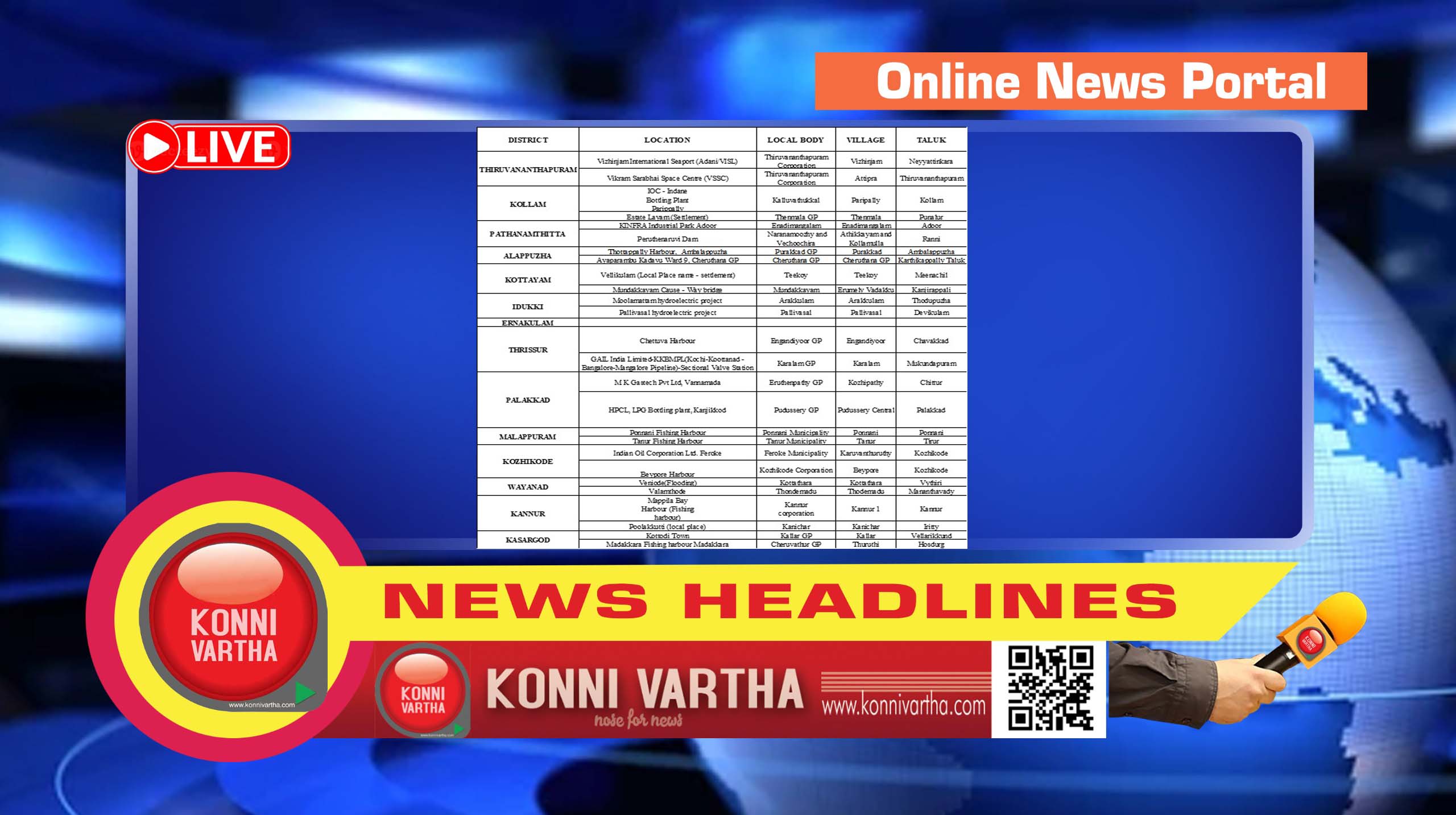 konnivartha.com: ദേശീയ ദുരന്ത നിവാരണ അതോറിറ്റിയും, കേരള സംസ്ഥാന ദുരന്ത നിവാരണ അതോറിറ്റിയും സംയുക്തമായി 2025 ഏപ്രിൽ 11-ന് സംസ്ഥാനതല ചുഴലിക്കാറ്റും അനുബന്ധ ദുരന്തങ്ങളുടെയും തയ്യാറെടുപ്പുകൾ വിലയിരുത്തുന്നതിനായി മോക്ക് ഡ്രിൽ സംഘടിപ്പിക്കുന്നു. ഏപ്രിൽ 2-ന് (നാളെ) സംസ്ഥാന വ്യാപകമായി ഒരു ഓൺലൈൻ തയ്യാറെടുപ്പ് യോഗം നടത്തപ്പെടും. ഈ യോഗത്തിൽ 13 ജില്ലകളിലെ (എറണാകുളം ഒഴികെ) ജില്ലാ ദുരന്ത നിവാരണ അതോറിറ്റികൾ, ദുരന്തനിവാരണവുമായി ബന്ധപ്പെട്ട വിവിധ വകുപ്പ് പ്രതിനിധികൾ, തദ്ദേശ സ്വയംഭരണ സ്ഥാപനങ്ങൾ, കേന്ദ്ര-സംസ്ഥാന സേനകൾ, റെയിൽവേ, ടെലികോം സേവന ദാതാക്കൾ, പ്രധാന വ്യവസായ-വാണിജ്യ കേന്ദ്രങ്ങളുടെ ചുമതലയുള്ള ഉദ്യോഗസ്ഥർ എന്നിവരും വിഴിഞ്ഞം തുറമുഖം, VSSC (ISRO), IOCL, IMD, INCOIS, CWC, NRSC തുടങ്ങിയ ഏജൻസികളുടെ പ്രതിനിധികളും ഇന്റർ ഏജൻസി ഗ്രൂപ്പിന്റെ അംഗങ്ങളും പങ്കെടുക്കും.ദേശീയ ദുരന്തനിവാരണ അതോറിറ്റിയുടെ അംഗമായ ലെഫ്റ്റനന്റ് ജനറൽ സയ്യദ് അട്ട ഹസൈൻ (Retd)…