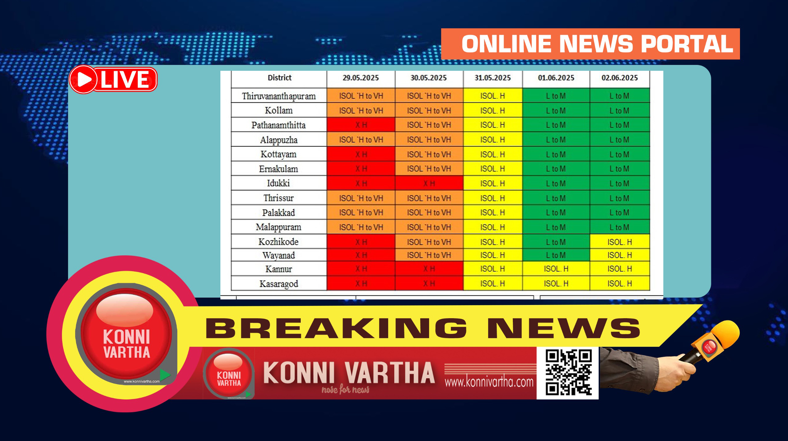 konnivartha.com:അടുത്ത 5 ദിവസം പടിഞ്ഞാറൻ കാറ്റ് കേരളത്തിന് മുകളിൽ ശക്തമാകാൻ സാധ്യത. മാറാത്തവാഡക്കു മുകളിലായി ന്യുനമർദ്ദം സ്ഥിതിചെയ്യുന്നു. മെയ് 27 ഓടെ മധ്യ പടിഞ്ഞാറൻ – വടക്കൻ ബംഗാൾ ഉൾക്കടലിനു മുകളിലായി മറ്റൊരു ന്യുനമർദ്ദം കൂടി രൂപപ്പെടാൻ സാധ്യത. കേരളത്തിൽ അടുത്ത 5 ദിവസം വ്യാപകമായ മഴയ്ക്ക് സാധ്യത. ഇന്ന് (മെയ് 26 ) ഒറ്റപ്പെട്ട അതിതീവ്രമായ മഴയ്ക്കും 26 മുതൽ 30 വരെ അതിശക്തമായ മഴയ്ക്കും സാധ്യത. Strong Westerly/ North Westerly winds likely to continue at lower levels over Kerala and Lakshadweep region during the next 7 days. A low-pressure area is likely to form over westcentral and adjoining North Bay of Bengal around 27th May. Fairly…