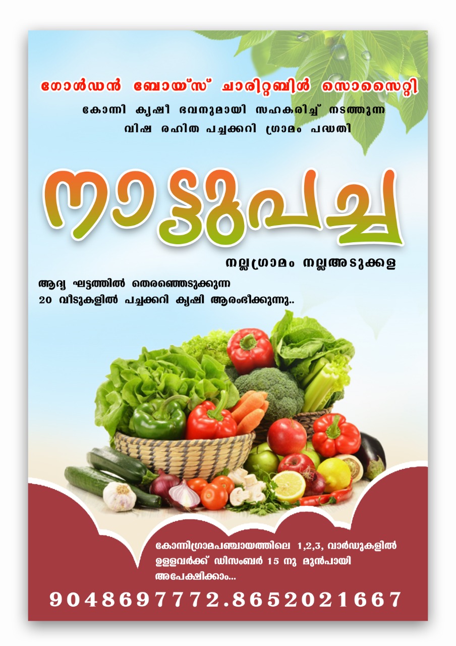 കോന്നി വാര്ത്ത ഡോട്ട് കോം : നല്ല ഗ്രാമം നല്ല അടുക്കള എന്ന സന്ദേശം ഉയര്ത്തി വിഷരഹിതപച്ചക്കറി ഗ്രാമം എന്ന വലിയ സ്വപ്നത്തിലേക്ക് അട്ടച്ചാക്കല് ഗോൾഡൻ ബോയ്സ്സിന്റെ ആദ്യ ചുവട് വെപ്പ് . കോന്നി കൃഷി ഭവനുമായി സഹകരിച്ചു കൊണ്ട് വീടുകളിൽ പച്ചക്കറി കൃഷി ആരംഭിക്കുന്നു എന്ന് ഭാരവാഹികള് അറിയിച്ചു . കോന്നി ഗ്രാമ പഞ്ചായത്തിലെ മണിയൻപാറ, കിഴക്കുപുറം,ചെങ്ങറ എന്നീ വാർഡുകളിൽ ആണ് പദ്ധതി തയ്യാറാക്കുന്നത് . ആദ്യ ഘട്ടത്തിൽ 20 വീടുകളിൽ ആണ് കൃഷി ആരംഭിക്കുന്നത്. ജൈവ കൃഷി രംഗത്തെ പരിചയ സമ്പന്നരുടെ സേവനം ഈ പദ്ധതിയിൽ ഉണ്ടാകും. കൂടുതൽ വില കൊടുത്തു വിഷം കലർന്ന പച്ചക്കറി വാങ്ങുന്നത് ഇനി ഒഴിവാക്കാം. വീട്ടിൽ കൃഷി ആരംഭിക്കാം. കോന്നി ഗ്രാമ പഞ്ചായത്തിലെ മണിയൻപാറ, കിഴക്കുപുറം,ചെങ്ങറ എന്നീ വാർഡുകളിൽ താല്പര്യം ഉള്ളവര് ഡിസംബർ 15 ന് മുൻപായി…
