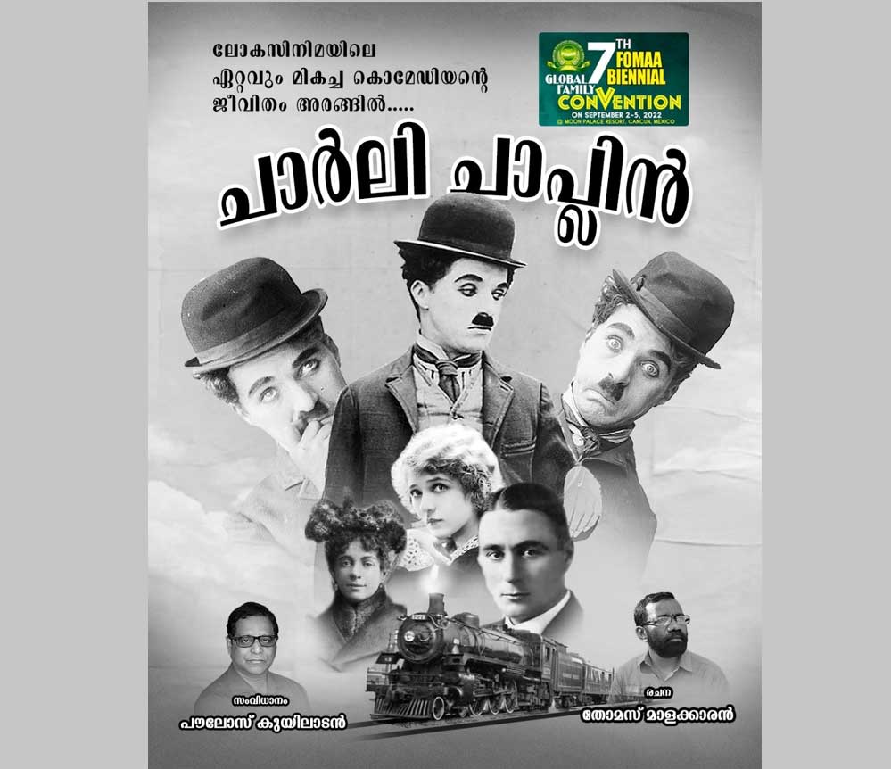 ജോയിച്ചന് പുതുക്കുളം konnivartha.com : ലോകസിനിമയിലെ ഏറ്റവും മികച്ച കൊമേഡിയന് ചാര്ലി ചാപ്ലിന്റെ ജീവിതത്തെ ആസ്പദമാക്കി ഫോമയുടെ നേതൃത്വത്തില് അമേരിക്കന് മലയാളികള് അരങ്ങിലെത്തിക്കുന്ന നാടകമാണ് ചാര്ലി ചാപ്ലിന് . തോമസ് മാളക്കാരന് രചിച്ച നാടകം പൗലോസ് കുയിലാടന് സംവിധാനം ചെയ്യുന്നു . ഏതൊരു നടനും വെല്ലുവിളിയായി മാറുന്ന ചാര്ലി ചാപ്ലിനെ അരങ്ങില് അവതരിപ്പിക്കുന്നതും പൗലോസ് കുയിലാടന് തന്നെയാണ് . നാടകപ്രേമികള്ക്ക് ഒരിക്കലും മറക്കാനാവാത്ത വേറിട്ടൊരു അനുഭവമായിരിക്കും ചാര്ലി ചാപ്ലിന് എന്ന നാടകം സമ്മാനിക്കുന്നത് . നാടകത്തിന്റെ ആദ്യ അവതരണം മെക്സിക്കോയിലാണ് .