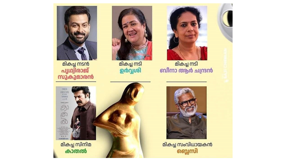 konnivartha.com: 2023ലെ സംസ്ഥാന ചലച്ചിത്ര പുരസ്കാരങ്ങൾ പ്രഖ്യാപിച്ചു. മമ്മുട്ടിയുടെ നിർമാണ കമ്പനിയായ മമ്മൂട്ടി കമ്പനി നിർമിച്ചു ജിയോ ബേബി സംവിധാനം ചെയ്ത ‘കാതൽ ദി കോർ’ആണു മികച്ച ചിത്രം. ആടുജീവിതത്തിലെ അഭിനയത്തിനു പൃഥിരാജ് സുകുമാരൻ മികച്ച നടനുള്ള പുരസ്കാരത്തിന് അർഹനായി. ‘ഉള്ളൊഴുക്ക്’ എന്ന ചിത്രത്തിലെ അഭിനയത്തിനു ഉർവശിയും തടവ് എന്ന ചിത്രത്തിലെ അഭിനയത്തിന് ബീന ആർ. ചന്ദ്രനും മികച്ച നടിമാരായും തെരഞ്ഞെടുക്കപ്പെട്ടു. ആടു ജീവിതത്തിന്റെ സംവിധായകൻ ബ്ലെസിയാണ് മികച്ച സംവിധായകൻ. സാംസ്കാരിക വകുപ്പ് മന്ത്രി സജി ചെറിയാനാണു പുരസ്കാരങ്ങൾ പ്രഖ്യാപിച്ചത്. ജോജു ജോർജിന്റെ അപ്പു പാത്തു പപ്പു പ്രൊഡക്ഷൻ ഹൗസ് നിർമിച്ച് രോഹിത് എം ജി കൃഷ്ണൻ സംവിധായകൻ ചെയ്ത ഇരട്ടയാണ് മികച്ച രണ്ടാമത്തെ ചിത്രം. പൂക്കാലം എന്ന ചിത്രത്തിലെ അഭിനയത്തിന് വിജയരാഘവൻ മികച്ച സ്വഭാവനടനായും പൊമ്പളൈ ഒരുമൈ എന്ന ചിത്രത്തിലെ അഭിനയത്തിന് ശ്രീഷ്മ ചന്ദ്രൻ മികച്ച…
