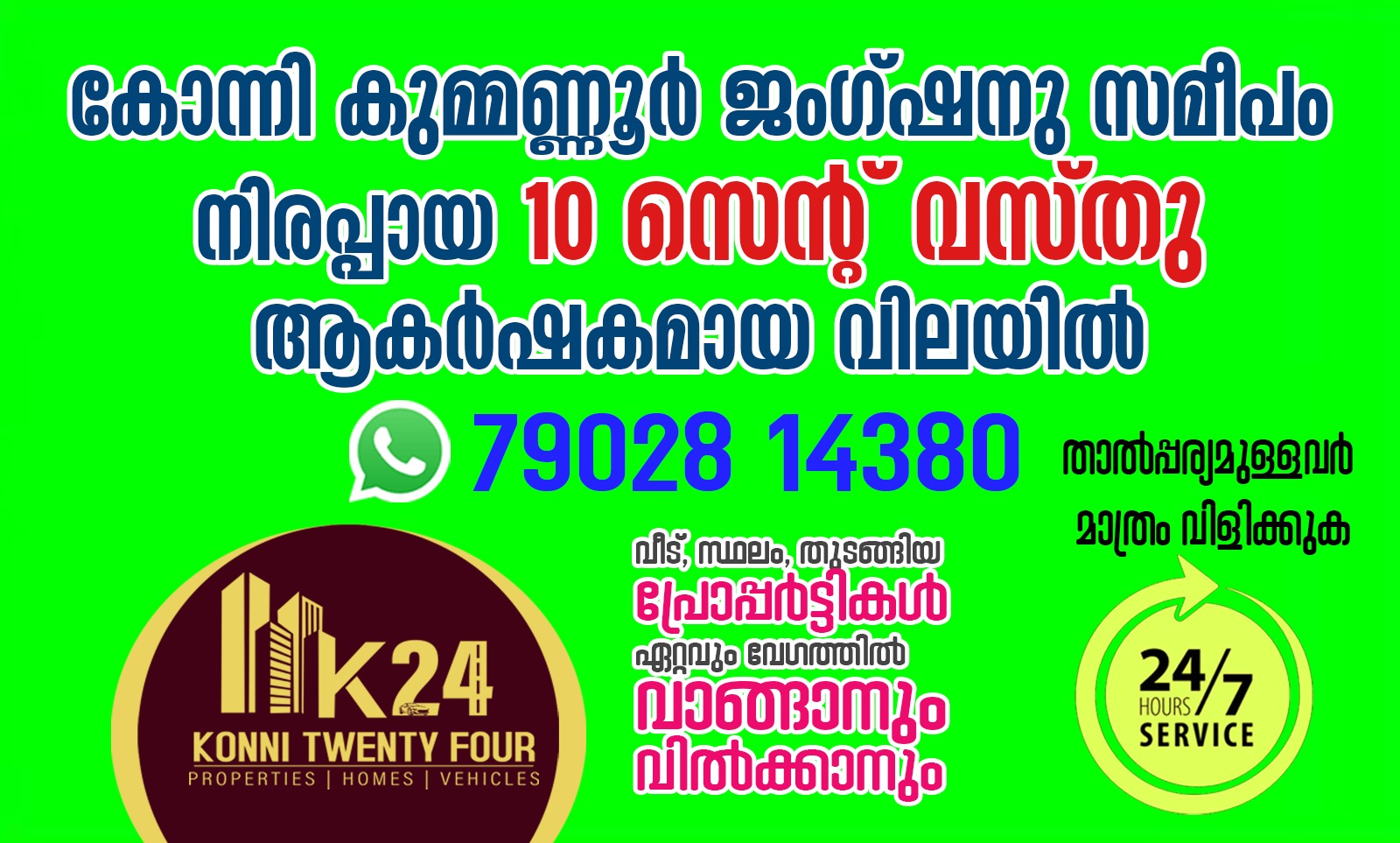 കോന്നി കുമ്മണ്ണൂര് ജംഗ്ഷനു സമീപം നിരപ്പായ 10 സെന്റ് വസ്തു ആകര്ഷമായ വിലയില് KONNI TWENTY FOUR PROPERTIES KONNI, PATHANAMTHITTA ☎️7902814380