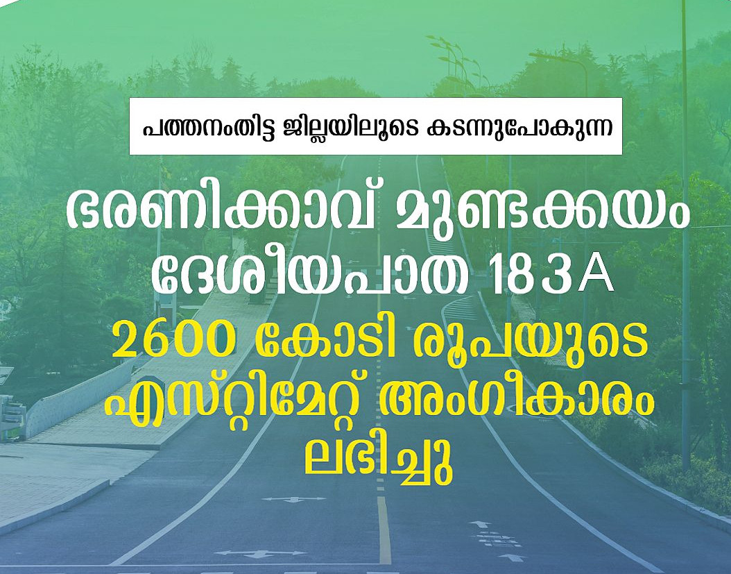 konnivartha.com: ഭരണിക്കാവിൽ നിന്നും ആരംഭിച്ച് പത്തനംതിട്ട ജില്ലയിലൂടെ കടന്നുപോകുന്ന ഭരണിക്കാവ് -മുണ്ടക്കയം ദേശീയപാത 183 എ യുടെ വികസനത്തിന് 2600 കോടി രൂപയുടെ എസ്റ്റിമേറ്റിന് അംഗീകാരം ലഭിച്ചതായി ആന്റോ ആന്റണി എം പി അറിയിച്ചു . ഭരണിക്കാവിൽ നിന്നും തുടങ്ങി അടൂർ, തട്ട, കൈപ്പട്ടൂർ, പത്തനംതിട്ട, മൈലപ്ര, മണ്ണാറക്കുളഞ്ഞി, വടശ്ശേരിക്കര, പെരുനാട്, ളാഹ, ഇലവുങ്കൽ, കണമല, എരുമേലി, പുലിക്കുന്ന് വഴി മുണ്ടക്കയത്ത് എത്തി ദേശീയപാത 183 ൽ ചേരുന്ന തരത്തിലാണ് അലൈൻമെന്റ്. 116.8 കിലോമീറ്റർ നീളത്തിൽ നാലുവരിപ്പാത നിർമ്മിക്കുകയാണ് ലക്ഷ്യം. പാത കടന്നുപോകുന്ന ചില ഭാഗങ്ങളിൽ ബൈപ്പാസുകൾ നിർമ്മിച്ചാണ് പാതയുടെ നിർമ്മാണം പൂർത്തീകരിക്കുന്നത്.